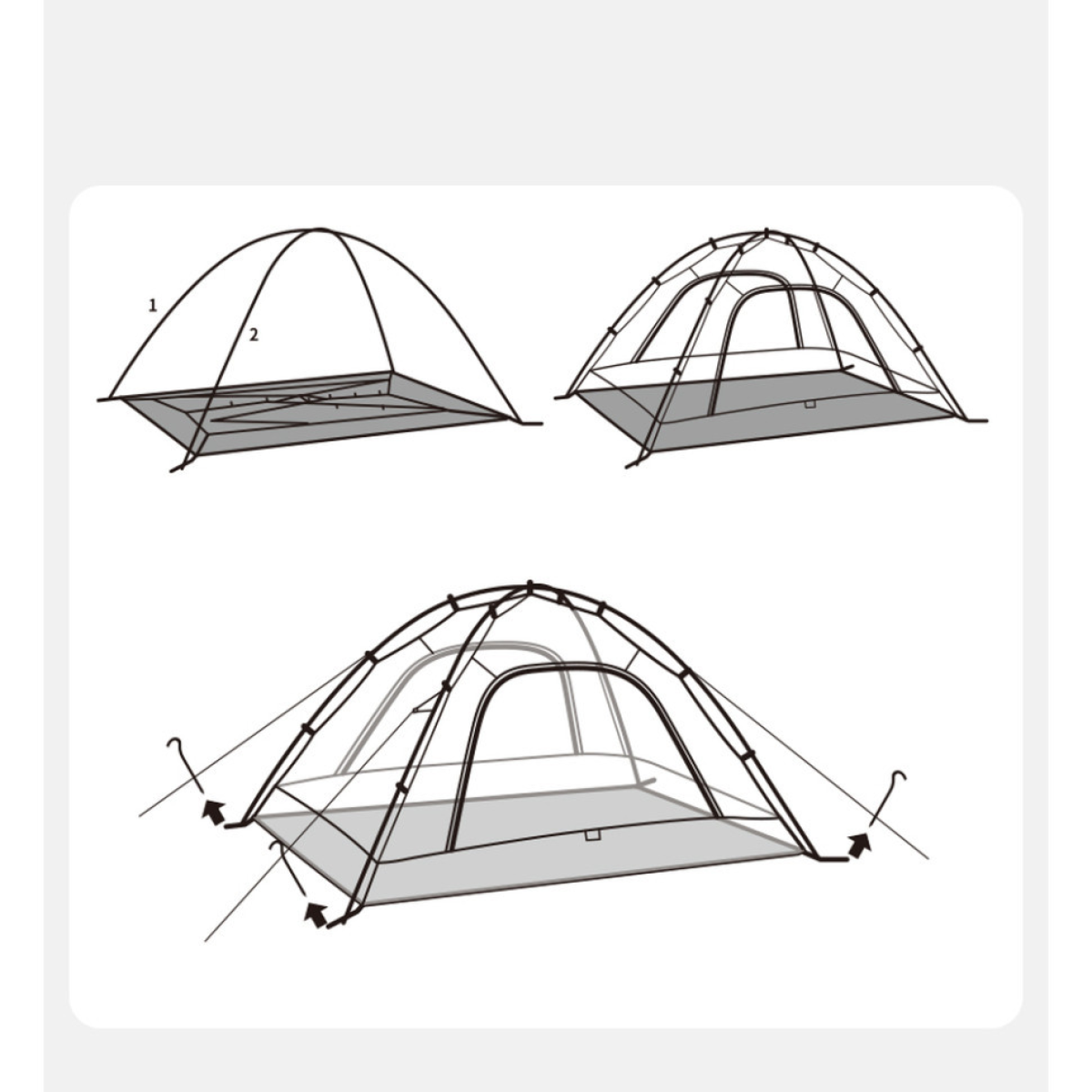 в комплекті є каркасні дуги х 2, алюмінієві кілочки х 8, світловідбивні вітровідтяжки х 4, чохол для зберігання.