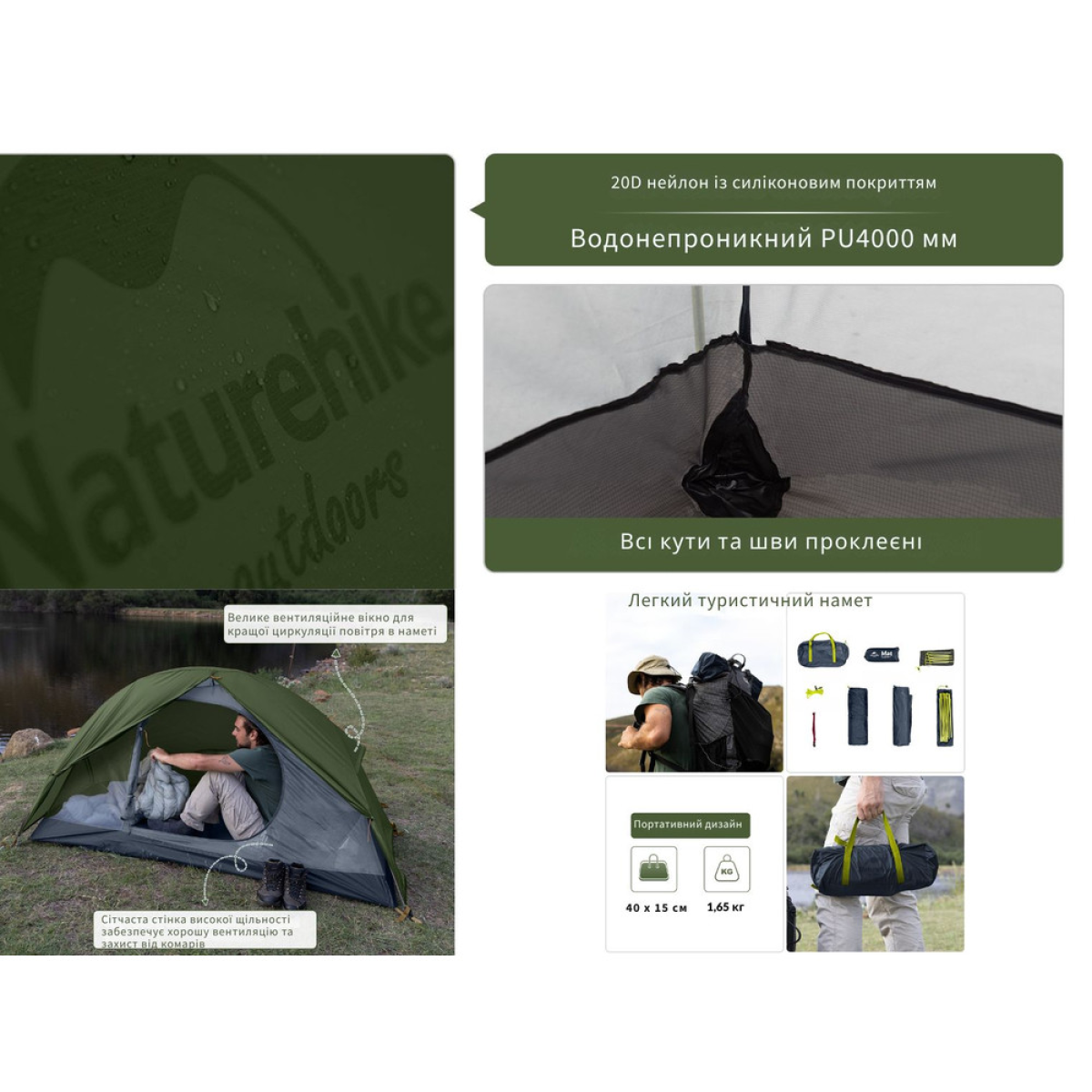 Опис намету надлегкого одномісного з футпринтом Naturehike Cycling 1 NH18A095-D, 210T, темно-зеленого: