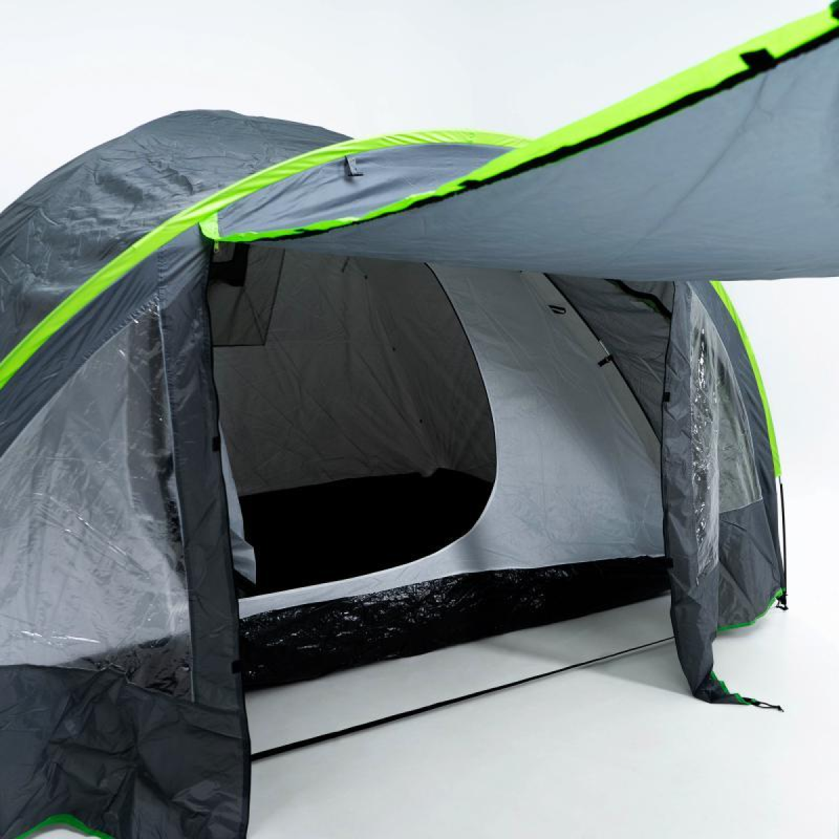 Намет Ranger Tornado 5 має дуже великий тамбур який втсановлюється на дуги, та додатково розтягується за допомогою мотузок. В тамбурі зручно розташувати речі і вони будуть надійно захищені від негоди та зробить Ваш відпочинок ще більш комфорнішим. Тамбур додатково оснащений прозорими вікнами, завдяки чому буде потрапляти більше світла в середеину. За необхідності тамбур можна відчинити та зробити козирок на металевих стійках і використовувати як затишне місце від сонця. Намет має приємний вигляд та виконаний у світлих кольорах і буде дуже гармонійно виглядати на природі.
