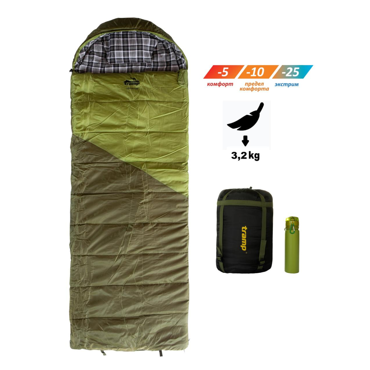 Спальний мішок Tramp Kingwood Long TRS-053L Сверхтеплий і просторий зимовий спальник ковдру з підголовником на дійсно холодну погоду. Поєднує високу ступінь захисту від холоду і можливість комфортно і не-обмежено виспатися як «як вдома». Ця модель - рідкісний випадок, коли спальник-ковдра буде так само ефективний у зимовий період як спальник конструкції кокон. Призначення – полювання, рибалка і подорожі пізньої осені, взимку та ранньою весною. Підійде для домашнього використання в повсякденному житті. Відмінне рішення для тих хто сильно мерзне навіть сентябрскими або травневими ночами. М“яка приємна на дотик фланелева підкладка. Розстебнувши спальник можна отримати велике двоспальне ковдру або м“яке тепле покривало. Long – подовжена і розширена модель для високих і широкоплечих користувачів. Утеплювач: У кемпинговом спальнику спальнику Tramp Kingwood використовується порожнистий 4-х канальний утеплювач ProLite Extrafil Q4. Багаторазово перевірений в екстремальних експедиціях утеплювач має складну спираевидную форму, а волокно містить 4 порожнистих каналу, що надають додаткову теплоізоляцію, не збільшуючи вагу вироби (аналог утеплювача TermoLite by Dupont). На відміну від пуху, ProLite Extrafil Q4 гіпоалергенний і зберігає тепло навіть у вологому стані. Особливості: - розстебнувши спальник по периметру ви отримуєте величезне двоспальне ковдру. - просторий капюшон-підголовник з утяжкой по периметру - кишеня для подушки в капюшоні - зберігає тепло комір з обхватом 360 градусів - внутрішній матеріал - м“яка, комфортна, приємна до тіла, добре утримує тепло фланель - утеплювальна планка вздовж блискавки - поліпшена система захисту від закушування тканини блискавкою - сітчастий кишеню для документів усередині спальника - маленька кишенька для дрібниць на застібці комірцевої - можливість зістебнути спальники з правої і лівої блискавкою - 2 роз“ємні блискавки дозволяють швидко і зручно зшивається 2 спальника разом - Два замку блискавки дозволяють відкривати вентиляційний отвір на рівні стоп - петлі для підвішування - якісний компресійний мішок - модель доступна в 2 ростовках: regular і long - подовжена і розширена модель для високих і широкоплечих користувачів. Сезонність-осінь, зима, весна Призначення: аматорський туризм, кемпінг, активний відпочинок , авто подорожі, полювання, риболовля, дача і використання в домашніх умовах Характеристики : Конструкція : одіяло з капюшоном-підголівником Вага: 3,2 кг Температурний режим : -5/-10/-25°С Розмір: 230*100 см Ростовка : Long - 230 див. Розмір в упаковці : 31,5*47 см Утеплювач : порожнистий 4-х канальний утеплювач ProLite Extrafil Q4 Зовнішній матеріал : Поліестер 210T Ripstop Внутрішній матеріал: Фланель Кількість шарів : 2х250 гр/м2 Блискавка: Правий/Лівий Упаковка: мішок компресионный