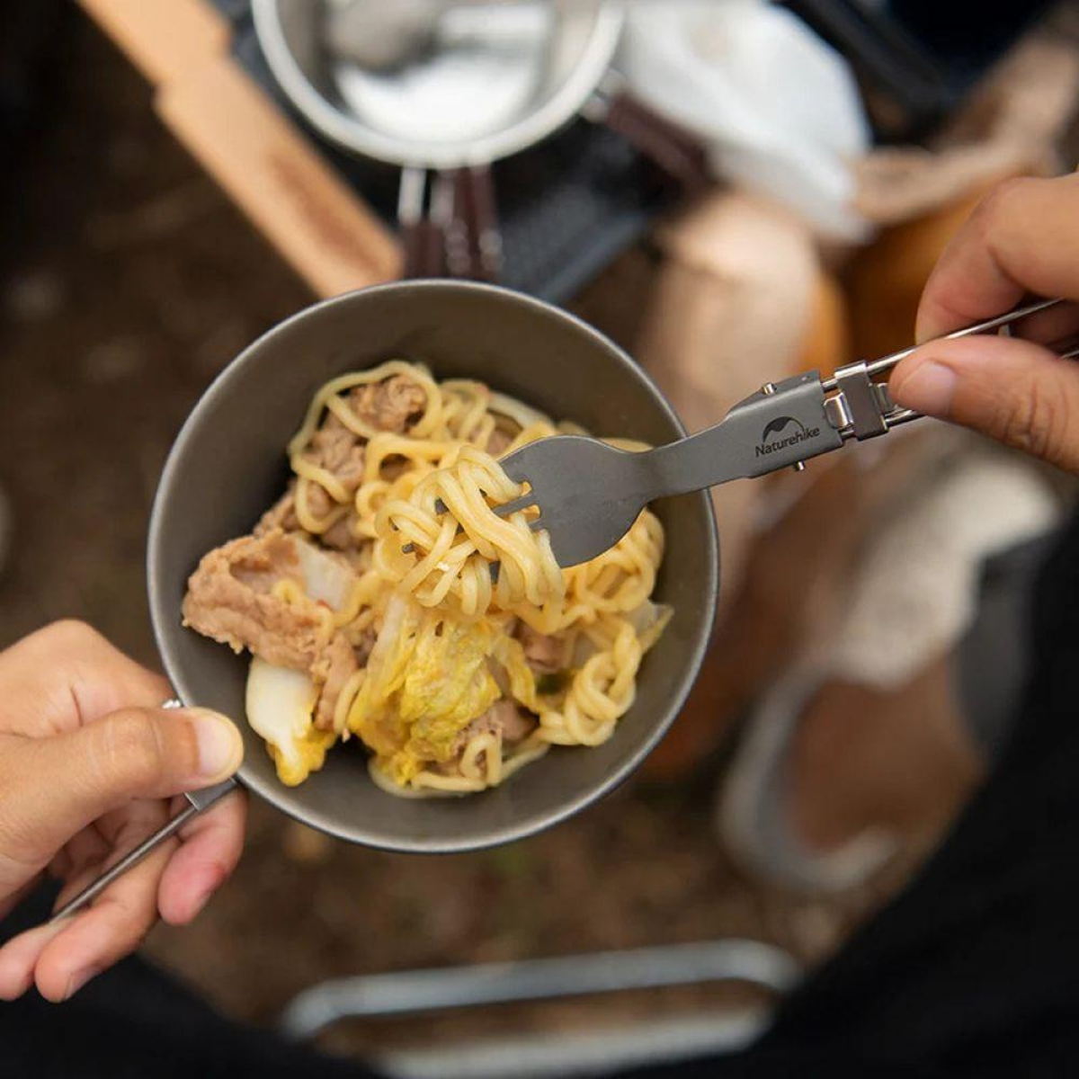 Виделка титанова складана Naturehike NH19C001-J сіра з мішечком
