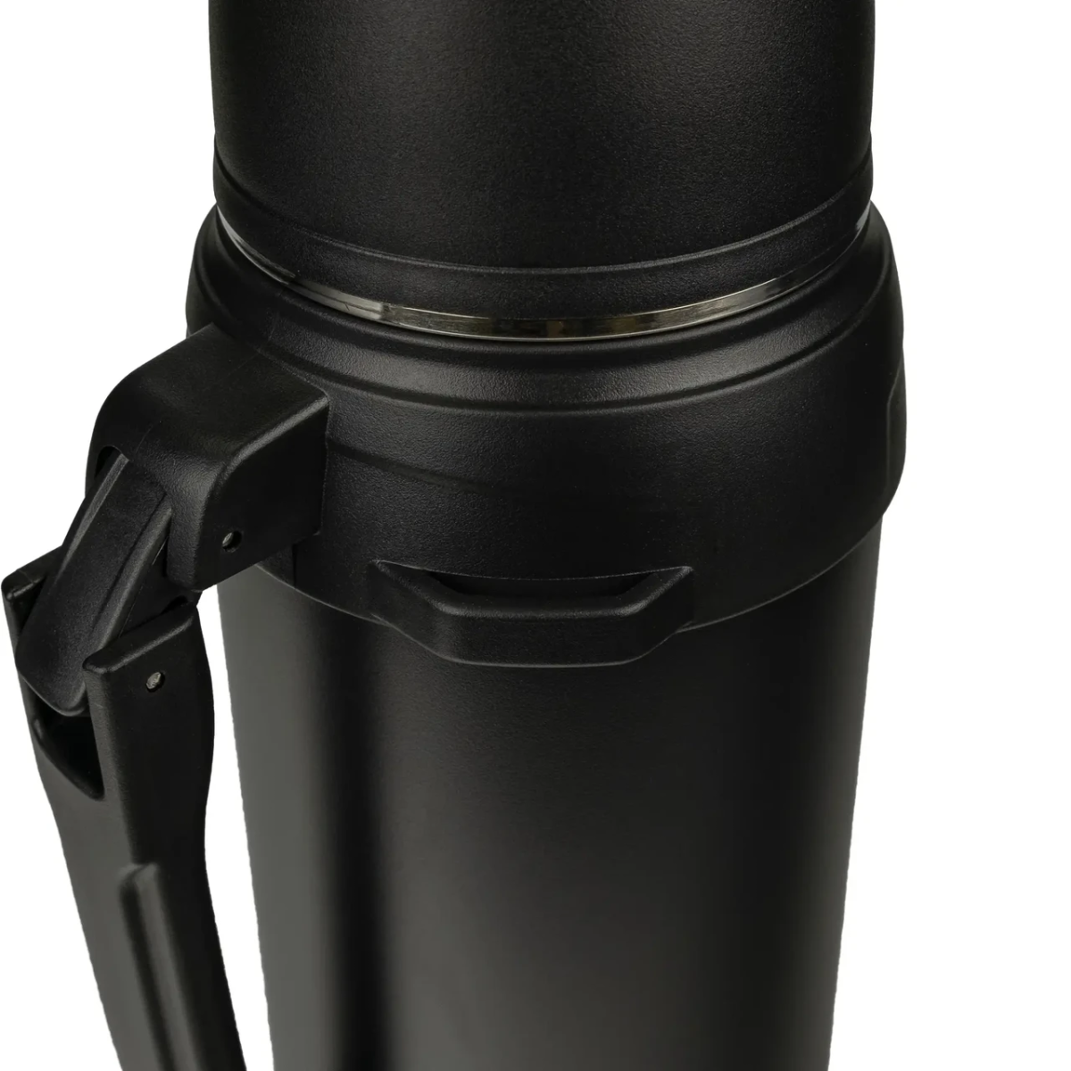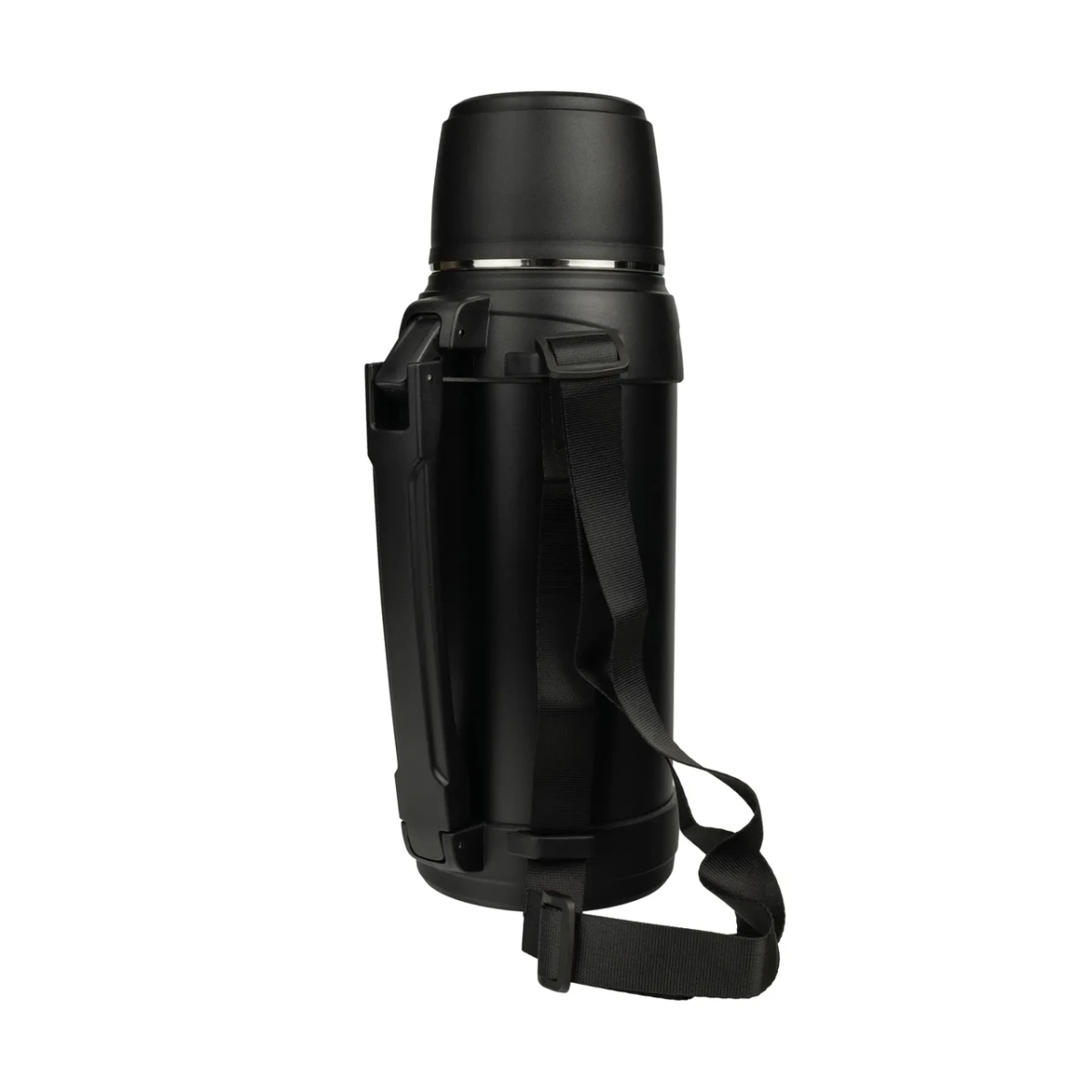 Термос має подвійні стінки, що дозволяють йому ефективно зберігати температуру як гарячих, так і холодних напоїв. ❄️???? Покриття термоса порошковою фарбою захищає корпус від подряпин і зносу. Для зручності перенесення — міцна ручка та додатковий ремінь для плечей, а ніжки на дні забезпечують стійкість і зручність під час транспортування. ????