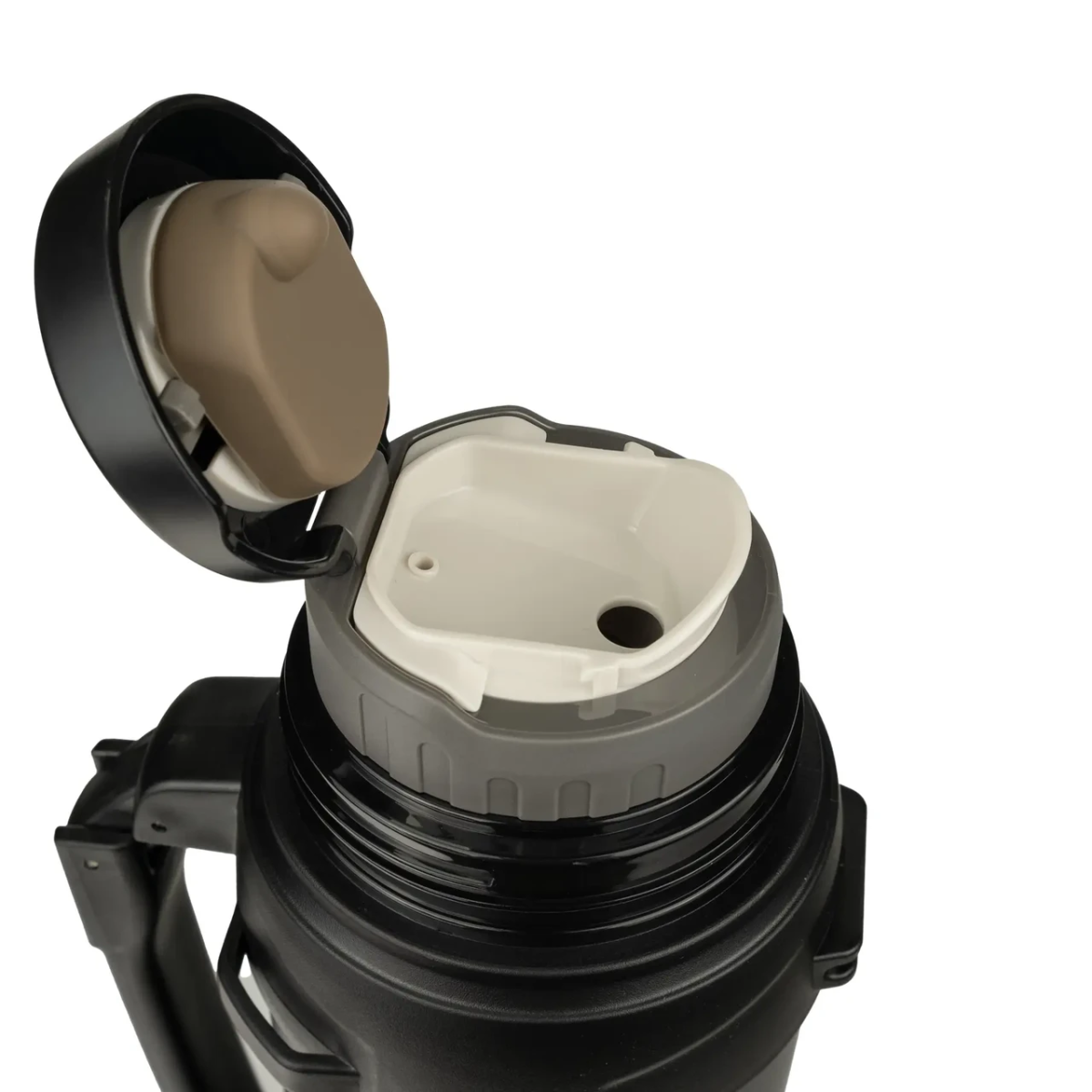Термос Tribe Family line — ідеальний вибір для великих компаній та сімей! ☕???? Його об“єм 2,5 л дозволяє насолоджуватись напоями протягом усього дня, а зручний відкидний корок з каналом для наливання робить використання термоса максимально комфортним. Завдяки кнопці, кришка відкривається без зайвих зусиль, а вбудоване сито запобігає закупорці отвору заваркою чи ягодами. ????????