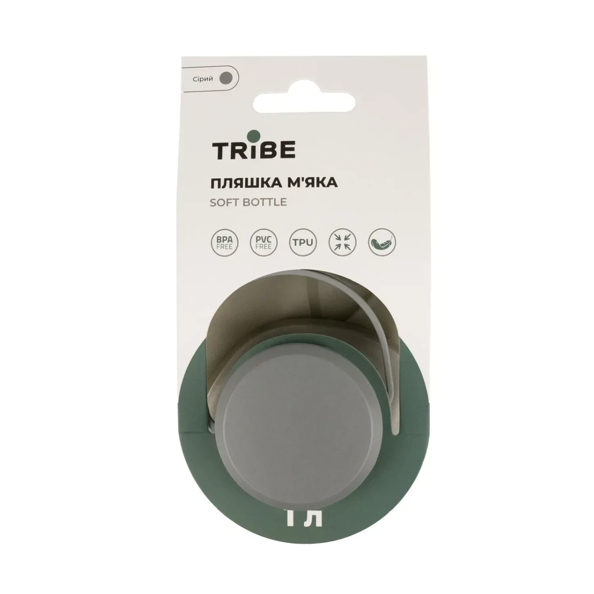 Складана пляшка для води Tribe Soft Bottle 1 л, TPU, легка та компактна, з ручкою для перенесення (T-FE-0023-grey)