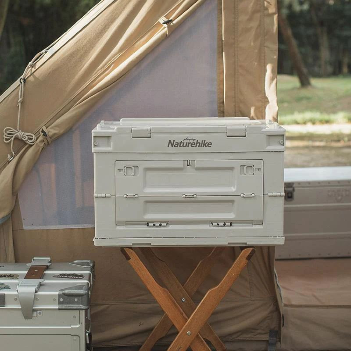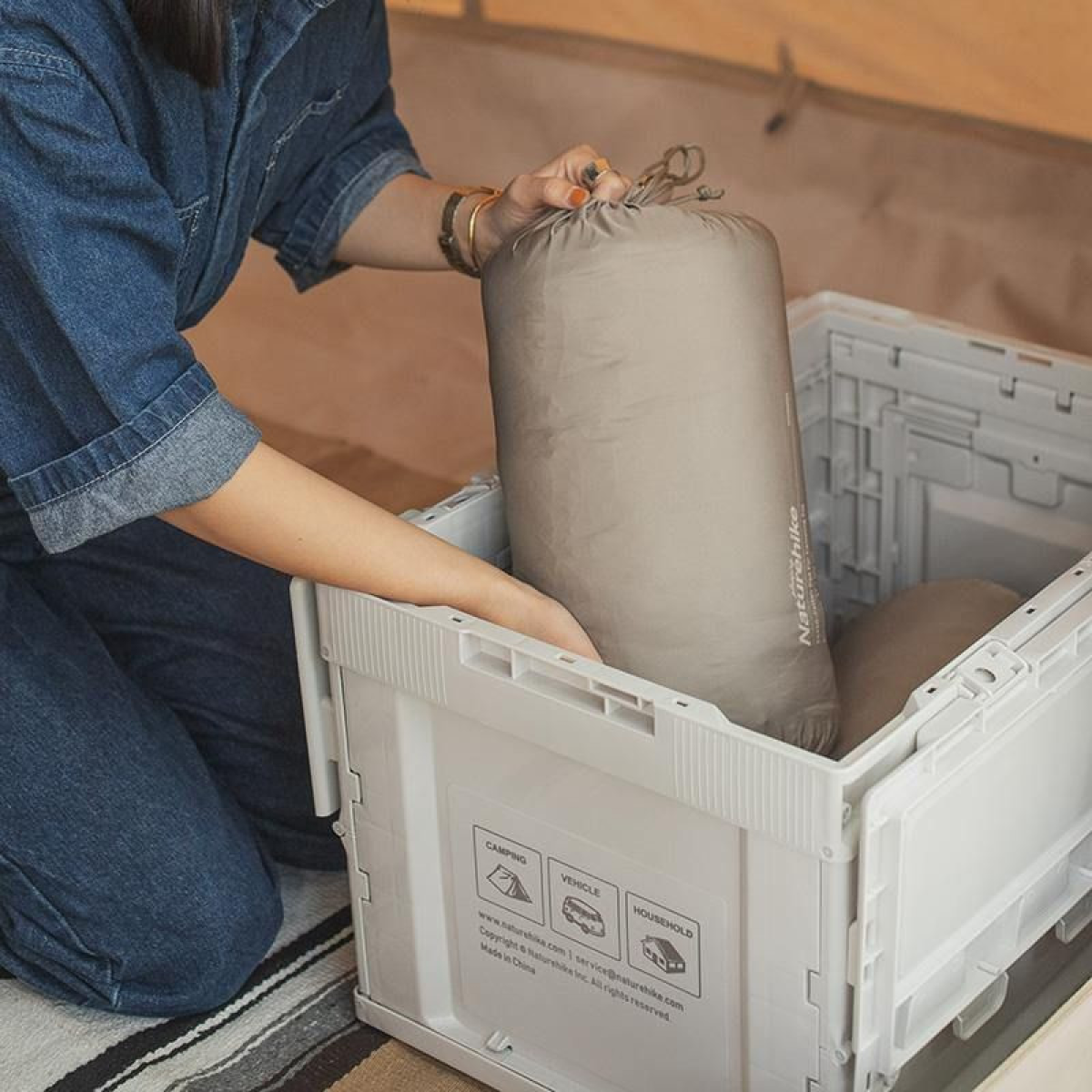 Опис складаного контейнера Naturehike NH20SJ036 80 л сірого Контейнер NH20SJ036 підходить для зберігання продуктів харчування та кухонного посуду. Його конструкція має повну герметичність, тому всередину моделі не проникає ні волога, ні дрібні комахи. Модель розкладається на кілька простих етапів. Спочатку необхідно відкрити і зафіксувати бічні стінки, а потім встановити верхню кришку, яку можна використовувати як імпровізований стіл. Контейнер має стійку конструкцію, яка не перевертається при необережному дотику, проте для більшої зручності можна окремо докупити підставку зі складними ніжками. Контейнер виготовлений з двох матеріалів: дно та стінки конструкції – з поліпропілену, верхня кришка – з поліпропілену з доповненням у вигляді натурального бамбука. Поліпропілен – це стійкий до високих температур полімер, який також не має неприємного запаху та витримує високі навантаження. Завдяки міцності даного матеріалу конструкція здатна витримувати вагу до 75 кг. Деревина бамбука несприйнятлива до гниття і буквально кам“яніє після висихання та обробки, тому поверхня контейнера зберігає цілісність навіть за цілеспрямованої механічної дії. Місткість моделі NH20SJ036 складає 80 літрів. Щоб максимально підвищити герметичність внутрішнього простору, можна використовувати EVA. При розкладанні розміри контейнера досягають 59 х 36 х 29 сантиметрів, однак у складеному вигляді його товщина зменшується вдвічі, роблячи модель компактною і зручною для перенесення. Важить контейнер 4,1 кг. Характеристики переносний контейнер для зберігання їжі у польових умовах; колір - сірий; місткість – 80 літрів; матеріали – поліпропілен + бамбук; максимальне навантаження – 75 кілограм; розміри у встановленому вигляді – 64 х 43.5 х 36 сантиметрів; розміри у складеному вигляді – 64 х 43.5 х 8.8 сантиметрів; вага – 4,1 кілограма.