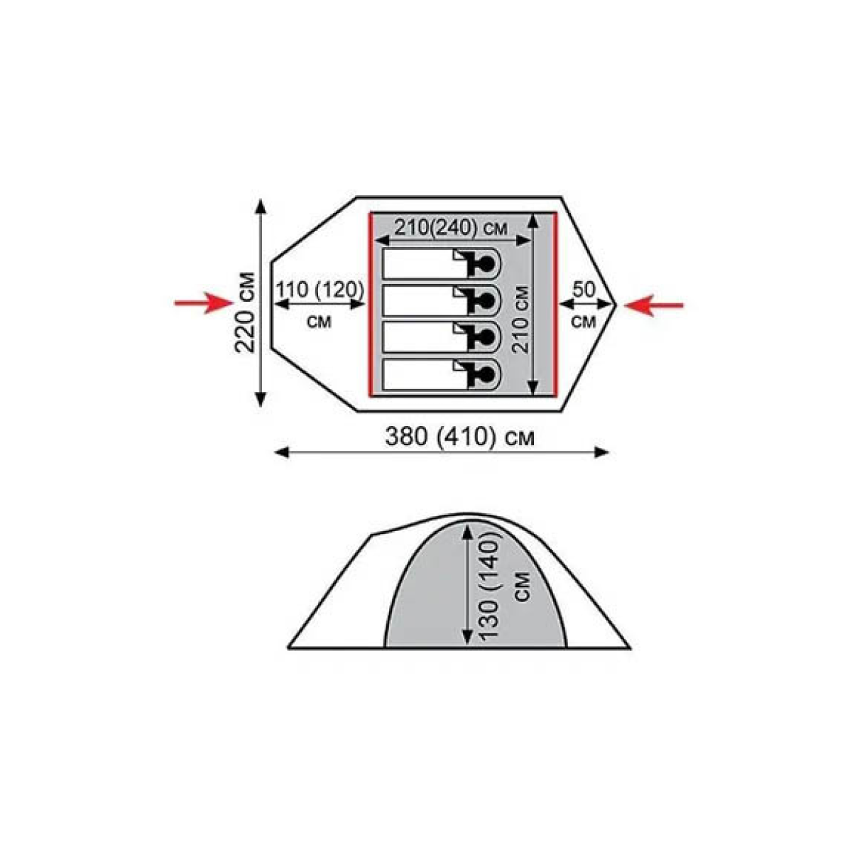 Намет Tramp Mountain 3 v2 Тримісний експедиційний намет Tramp Mountain 3 v2 Трехдуговая модель конструкції “півсфера“ з просторим тамбуром, двома входами і сніжної спідницею по периметру зовнішнього тенту. Чудові характеристики матеріалів, надійна конструкція, перевірена в різноманітних умовах, міцні алюмінієві дуги — ось те, що потрібно справжньому мандрівнику! Призначення: піший та гірський туризм, альпінізм і зимові походи Час використання: весна-літо-осінь-зима Особливості : - алюмінієвий каркас - снежная юбка для защиты от снега дождя и ветра - 2 входа и 2 тамбура - большой основной вместительный тамбур - входы внутренней палатки продублированы москитной сеткой - двухслойная конструкция - внешний тент палатки устойчив к ультрафиолетовому излучению - внешний тент имеет пропитку задерживающую распространение огня - светоотражающие оттяжки и элементы на вентиляции - два вентиляционных окна - все швы проклеены - комплектуется 3-хгранными колышками яркого цвета - идеальна для серьезных туристических походов в любое время года и любых погодных условиях Характеристики: Тип: Экспедиционная палатка Кількість місць: 3 Вага намету: 4.7 кг Розміри: 380 х 220 x 130 см Кількість входів: 2 Матеріал каркаса: ALU 7006 8,5 мм Матеріал дна: 100% поліестер 75D/190T 10000 мм в ст Матеріал тенту: 100% поліестер 75D/190T Diamond RipStop PU, 8000 мм в ст Матеріал внутрішнього намету: 100% дихаючий поліестер RipStop Кілочки: Алюмінієві