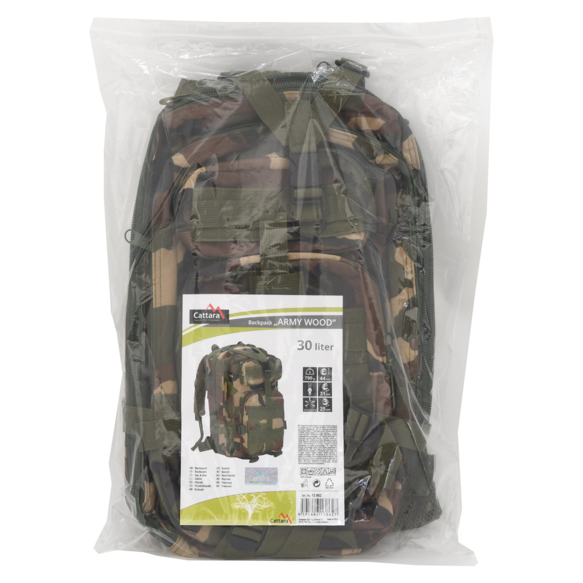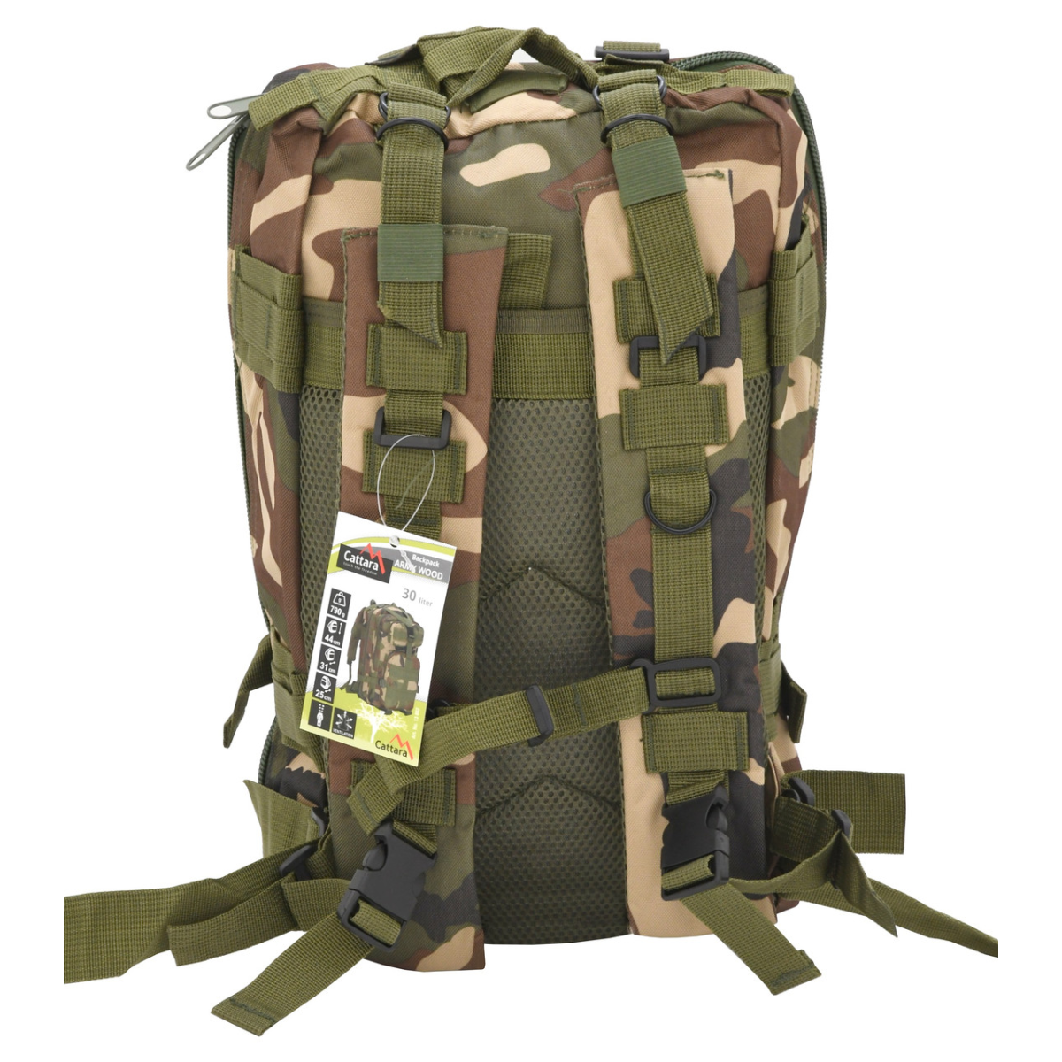 Призначення: перенесення вантажу в дорозі. Об“ємний м“який рюкзак з кількома кишенями, оснащений 2 основними, 2 додатковими, 4 внутрішніми та 1 задньою вентильованою кишенями. Він оснащений системою Molle спереду та з боків для кріплення іншого обладнання. Кишені оснащені міцною двосторонньою блискавкою. Внутрішні кишені та сітчаста кишеня доповнені петлями для безпечного носіння дрібниць. Одна з внутрішніх кишень оснащена класичною блискавкою, а задня вентильована кишеня оснащена застібкою-липучкою. Виготовлений зі 100% поліестеру з водонепроникним шаром ПВХ всередині. Рюкзак має розміри 31 x 44 x 25 см і пропонує містке місце для речей об’ємом до 30 л. Рюкзак можна відрегулювати за потреби для максимального комфорту за допомогою регульованих лямок. Після завантаження рюкзак можна стягнути вниз за допомогою компресійних ременів на кліпсі, щоб досягти більш компактних розмірів. Порожній рюкзак важить всього 790 г, що забезпечує комфортне носіння. Технічні дані: об“єм 30 л виготовлений зі 100% поліестеру з ПВХ шаром вага 790 г кріплення плечових ременів, поясного ременя, нагрудного ременя кількість зовнішніх кишень 5x загальна кількість кишень 9x Важливо: Зберігати в сухому місці Призначень: загальновійськовий, для кемпінгу, туризму і т.д. Тримати якомога далі від вогню