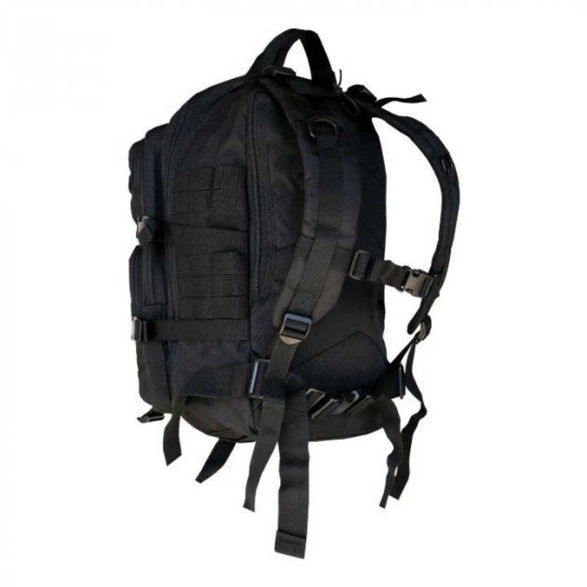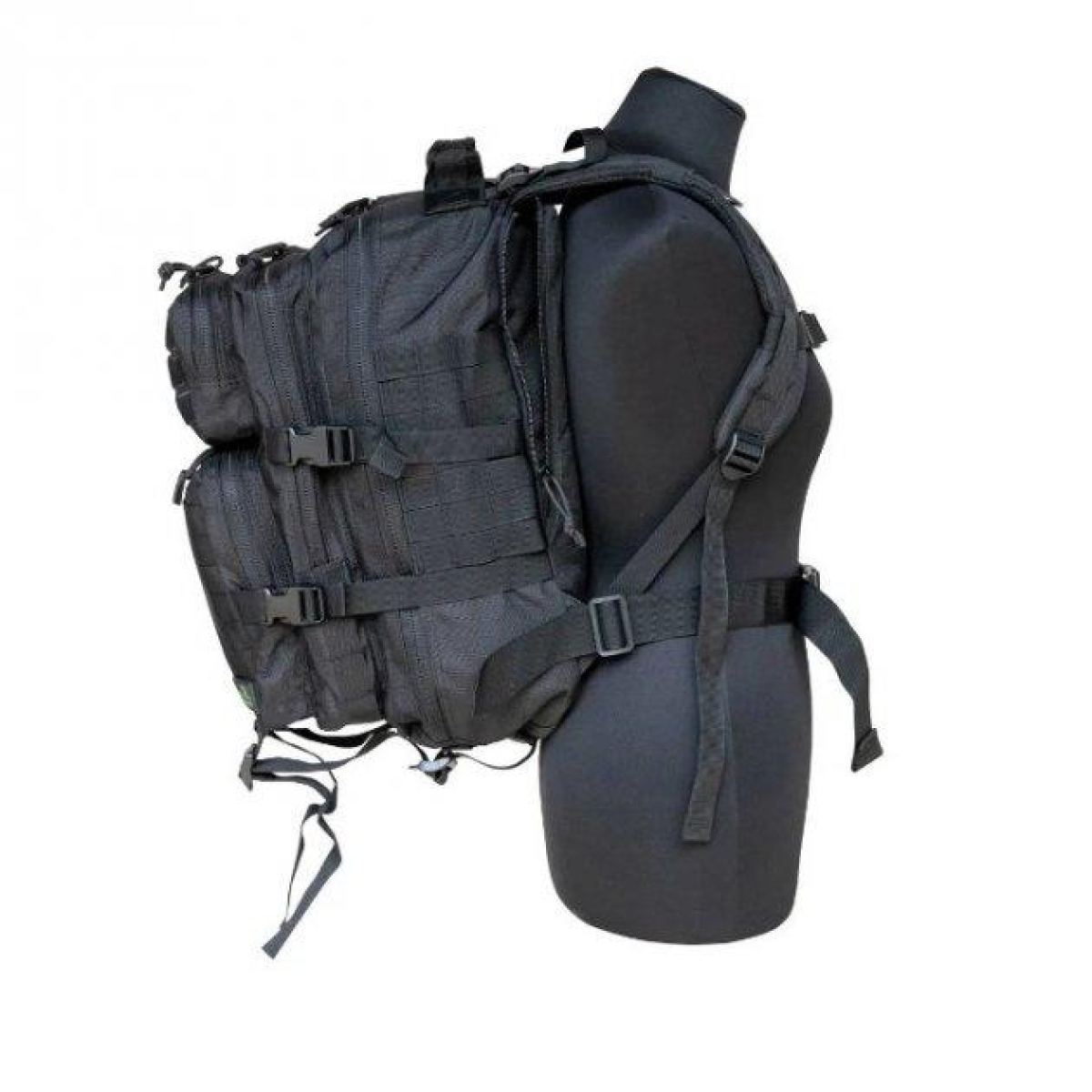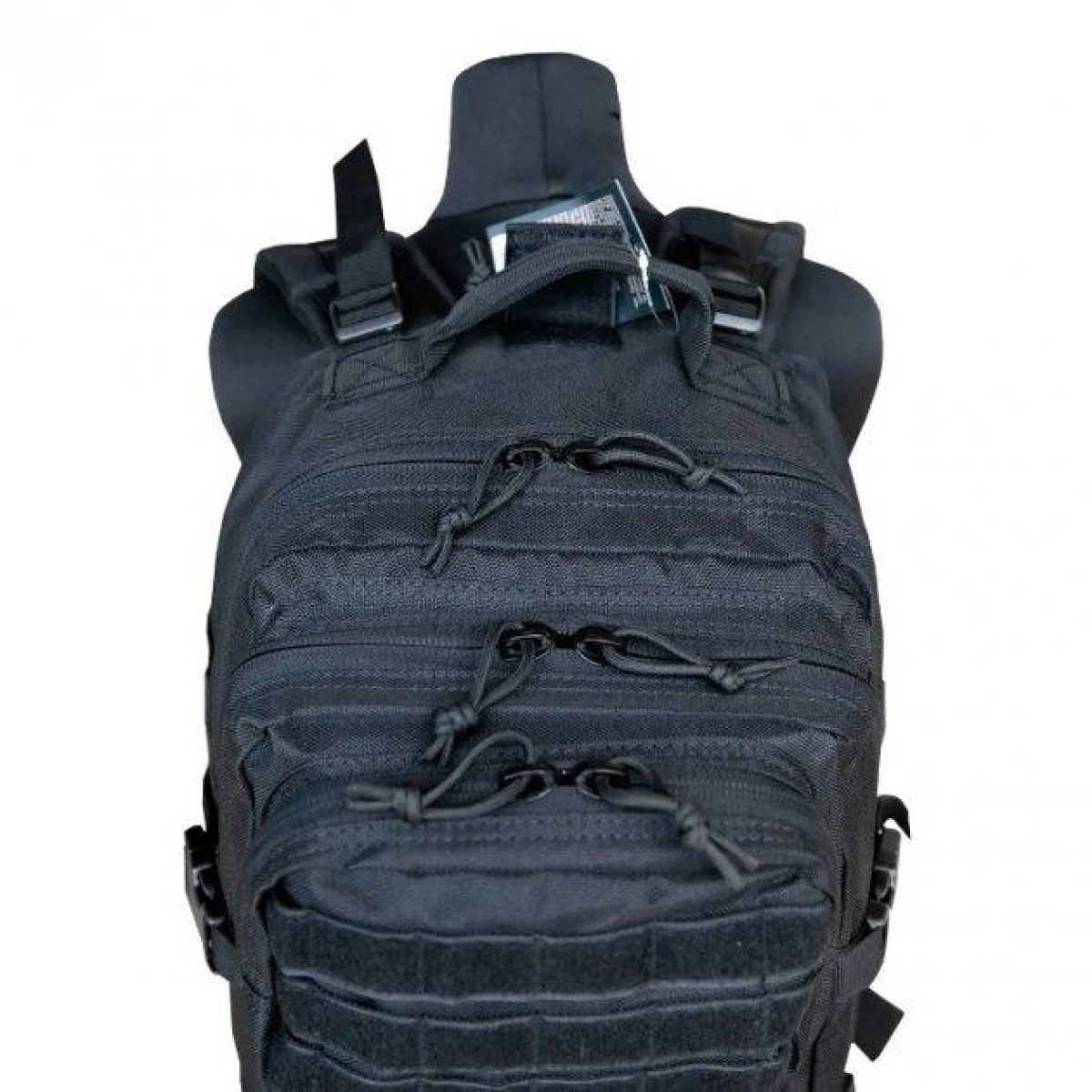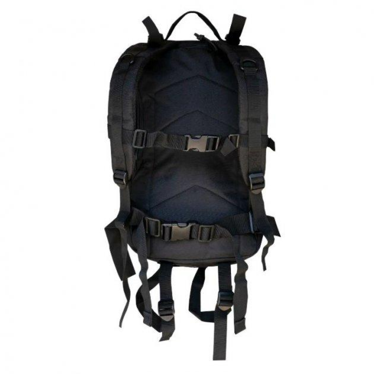 Завдяки нашитим з зовнішньої сторони стропи і петель системи MOLLE рюкзак можна доповнити необхідним спорядженням.