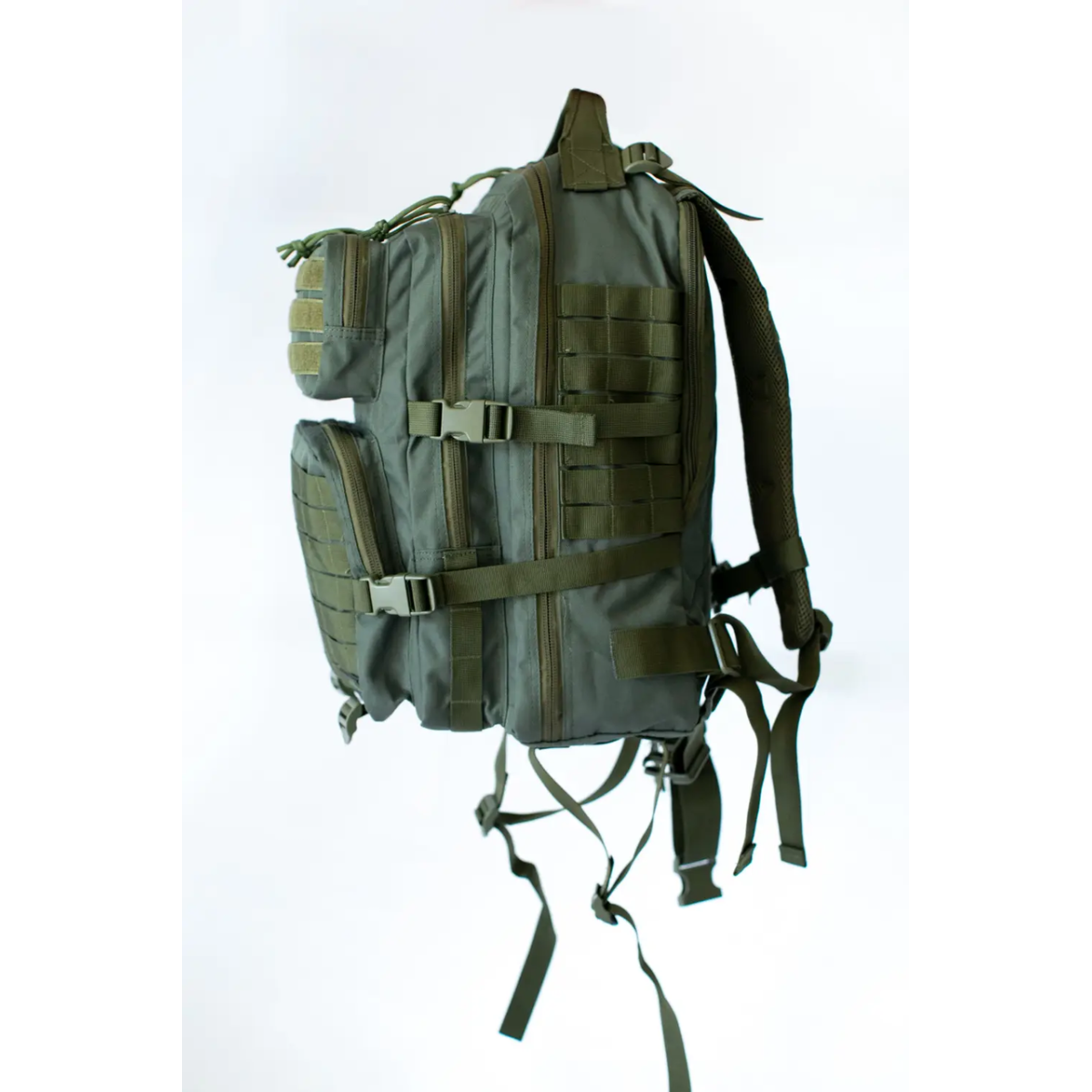 Тактичний рюкзак Tramp Squad 35 л. coyote Тактичний рюкзак Tramp Squad об“ємом 35 літрів на 4 відділення – універсальне рішення для тактичного використання так і для виїздів на полювання, рибалку або повсякденного носіння в великому місті. Кількість запасів, які поміщені у внутрішній простір, за стандартами, вистачає на 24 години. Робоча ємність основного відділу дорівнює 34 літрам, чого з лишком вистачає для перенесення різного спорядження і важливих деталей тактичної екіпіровки. Є спеціальні відділення для розміщення ідентифікаційних бейджів і документів (вбудоване в спинку глибоке потайної кишеньки для товстої папки з документами формату А4). Завдяки нашитим з зовнішньої сторони стропи і петель системи MOLLE рюкзак можна доповнити необхідним спорядженням. Особливості: - М“які регульовані під обсяг користувача широкі лямки анатомічної форми відстібаються знизу на засувках-фастексах для швидкого скидання рюкзака. - В пластикові півкільця на плечових лямках для зручності можна вставляти шланг питної системи або кріпити дод. обладнання на карабінах - Съемный, регулируемый по объему грузовой пояс. - Большое основное отделение можно полностью открыть и получить быстрый доступ ко всему содержимому рюкзака - В основном отделении глубокий открытый вертикальный внутренний карман из сетки на молнии, а так же закрыты карман на молнии и широкая резинка-фиксатор - Верхняя ручка для переноски усилена двойной строчкой. - Второе отделение - большой карман органайзер с несколькими внутренними карманами - открытыми, и на молнии. - На наружной стенке рюкзака 2 дополнительных кармана на молнии с панелью из велкро для размещение опознавательных знаков. - Зовнішня стінка обшита стропами системи MOLLE - Бічні стінки обшиті стропами ситеми MOLLE - Бічні компресійні стяжки на засувках - 2 компресійні стропи вантажні-стяжки на трьох-щелевках для зовнішнього кріплення додаткового вантажу (намети, ковдри) до нижньої частини рюкзака Характеристики: Об“єм: 35 л Розмір: 46 х 27 х 28 см Матеріал: Поліестер 600D PU Колір: coyote brown.