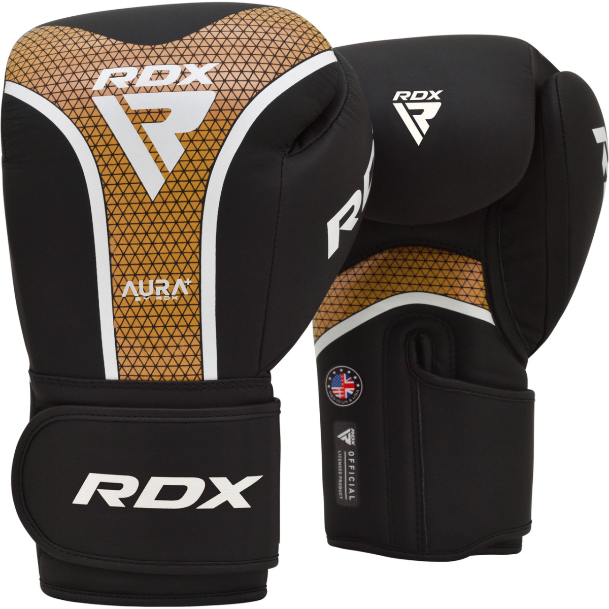 Боксерські рукавиці RDX AURA PLUS T-17 Black Golden 16 унцій (капа в комплекті)