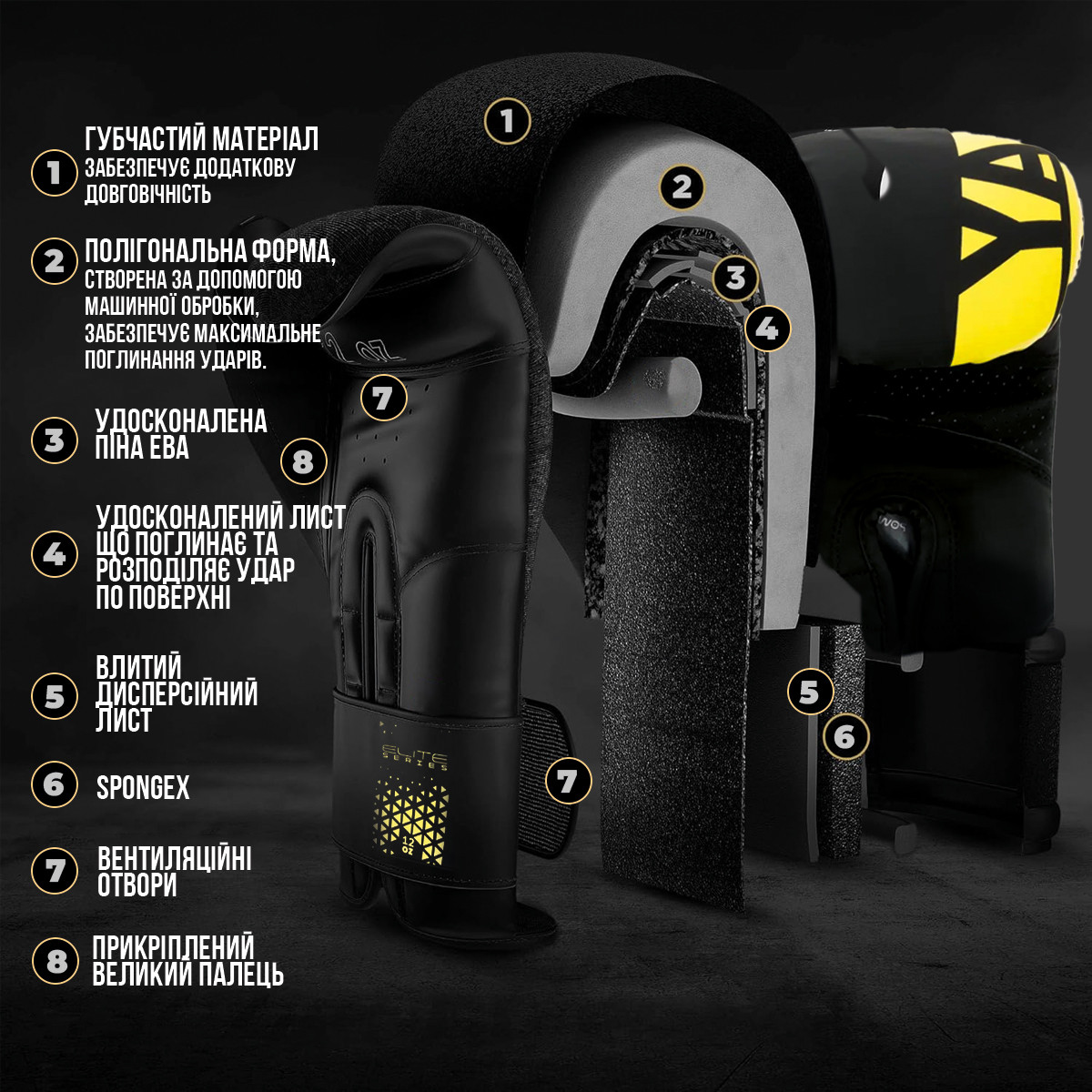 Боксерські рукавиці PowerPlay 3086 Matt Challenger Чорно-Жовті 12 унцій
