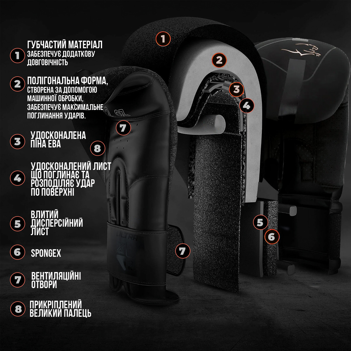 Боксерські рукавиці PowerPlay 3024 Ultra Mat Чорні 16 унцій