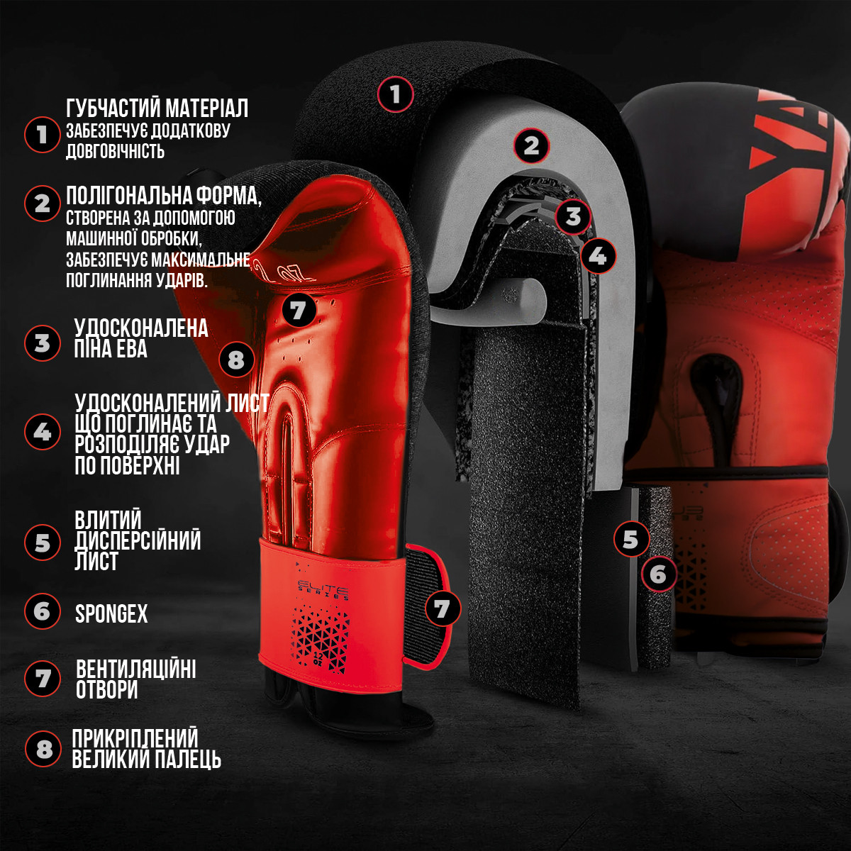 Боксерські рукавиці PowerPlay 3086 Matt Challenger Чорно-Червоні 16 унцій