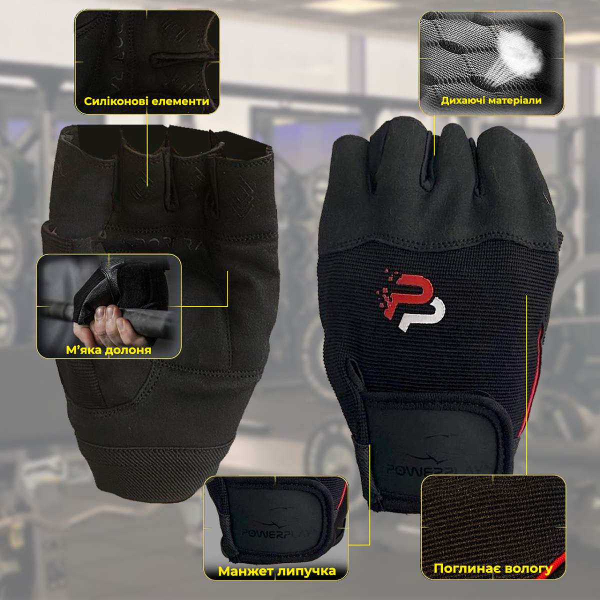 Рукавички PowerPlay призначені для захисту долонь. Забезпечують стабільність при інтенсивних рухах, захищають руки від розтягнень, запобігають ризику травмувань під час вправ.
