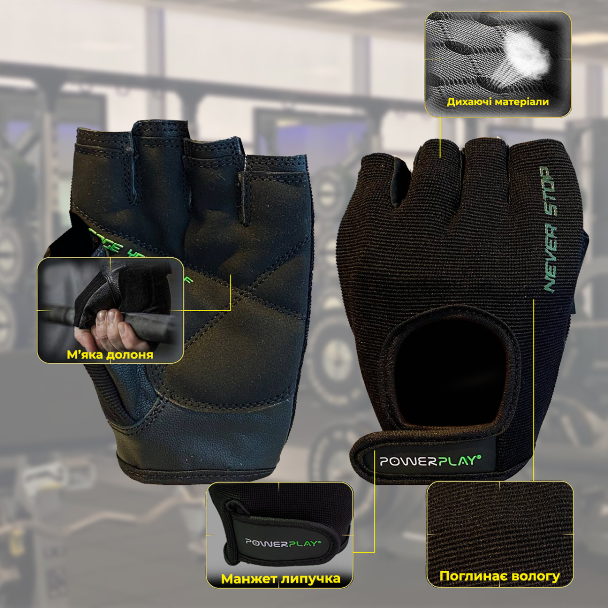 Рукавички PowerPlay призначені для захисту долонь. Забезпечують стабільність при інтенсивних рухах, захищають руки від розтягнень, запобігають ризику травмувань під час вправ.