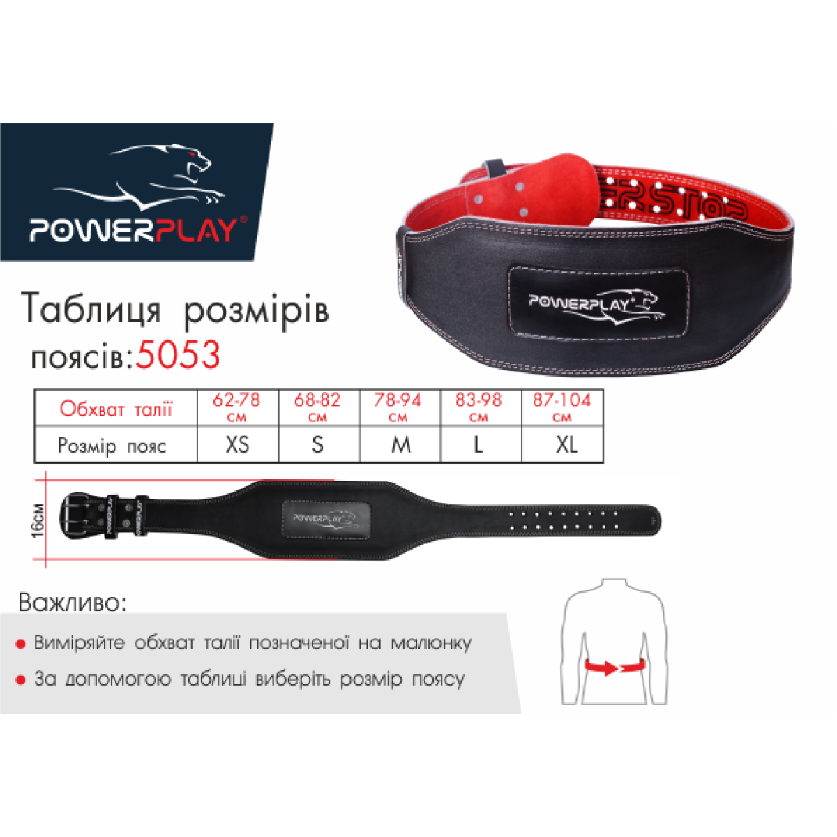 Пояс PowerPlay 5053 призначений для важкої атлетики.