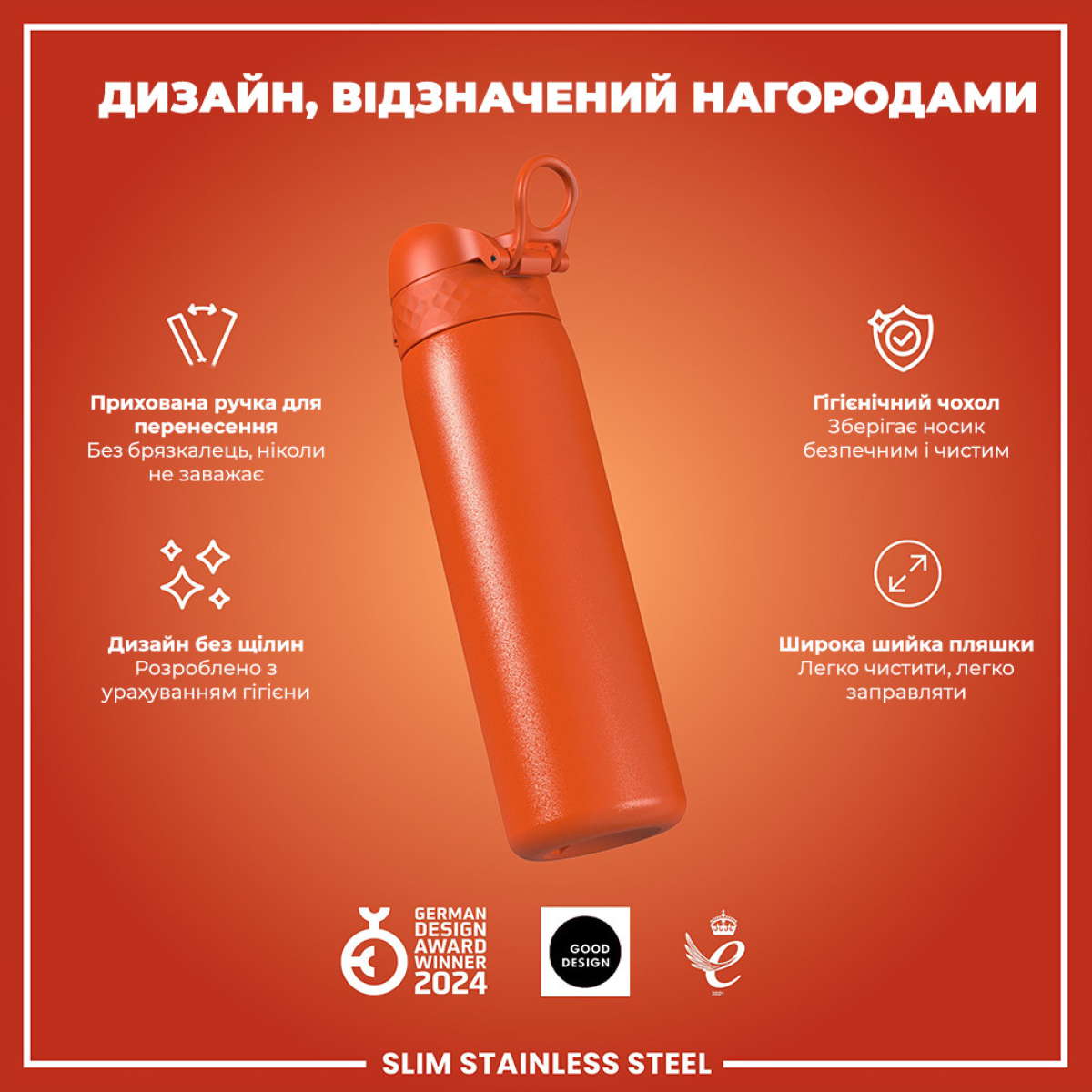 Пляшка для води металева ION8 600 мл. Stainless Steel , Hearty Orange