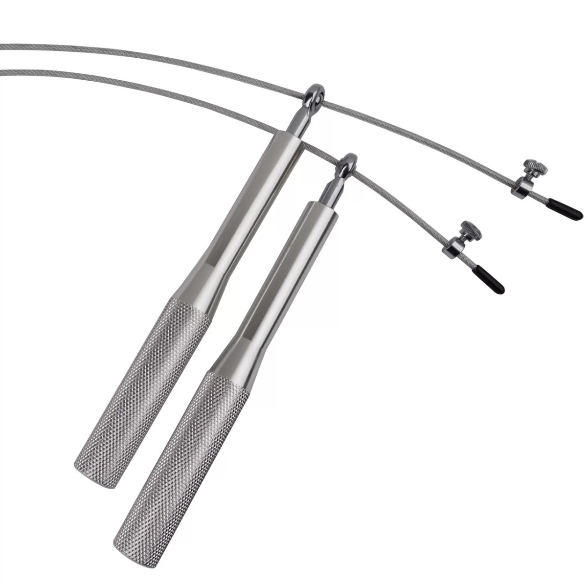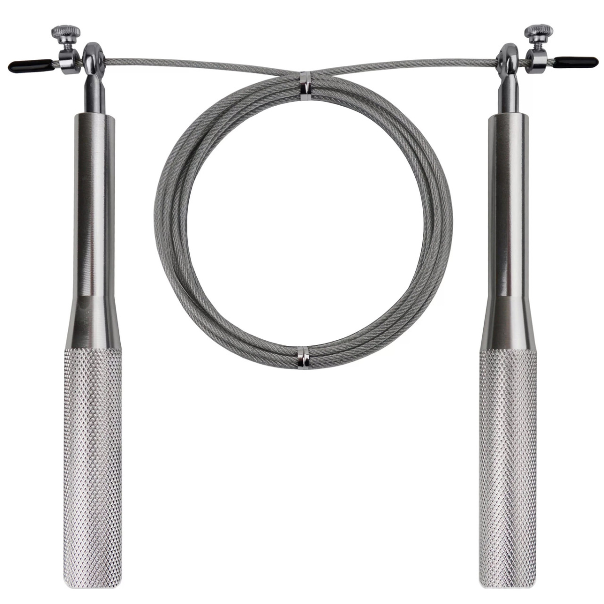 Тросова скакалка має швидкий поворот ручки на 360 градусів і два дротових троси різної товщини для забезпечення швидкого обертання!