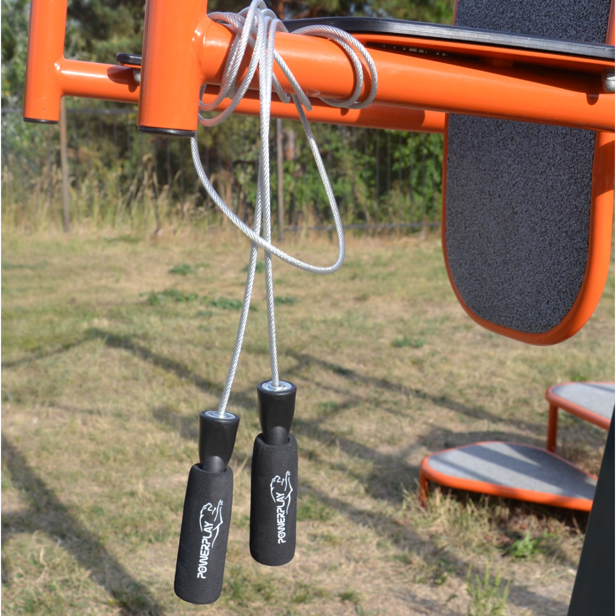 Пінні протиковзні ручки не втомлюють руки, тому ви можете зосередитися на підвищені витривалості та досягненні нових особистих рекордів. Скакалка PowerPlay має подвійні підшипники, які крутяться на 360 градусів для запобігання скручуванню шнурка під час тренування. Розмір ручки підходить як для жінок, так і для дітей. Компактна і легка скакалка може поміститися у будь-якій жіночій або чоловічій маленькій сумці чи валізі, щоб забезпечити вам тренування будь-де. Мотузка регулюється під ваш зріст. Просто виміряйте та встановить довжину кабелю за допомогою легко регульованих гвинтів.
