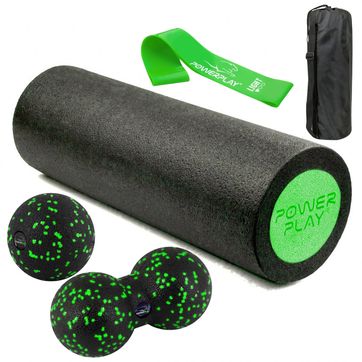 Набір для масажу та йоги PowerPlay PP_4095 EPP (Ролик 45*15 + 2-ва мячі) Green + резика 5.5 кг.