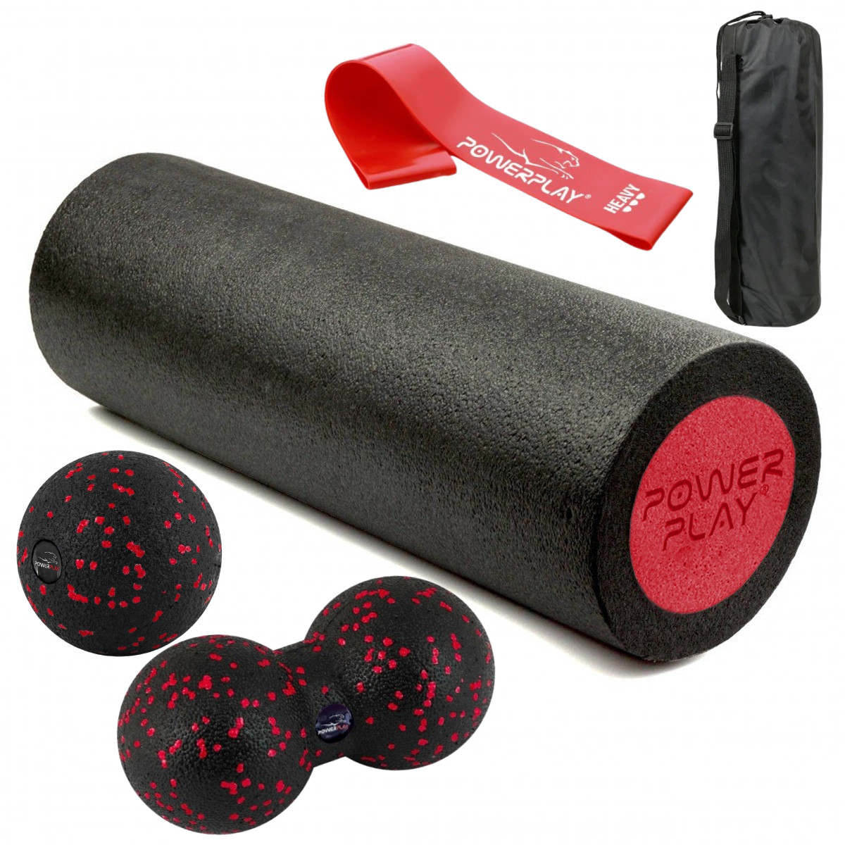 Набір для масажу та йоги PowerPlay PP_4095 EPP (Ролик 45*15 + 2-ва мячі) Red + резинка 11кг.