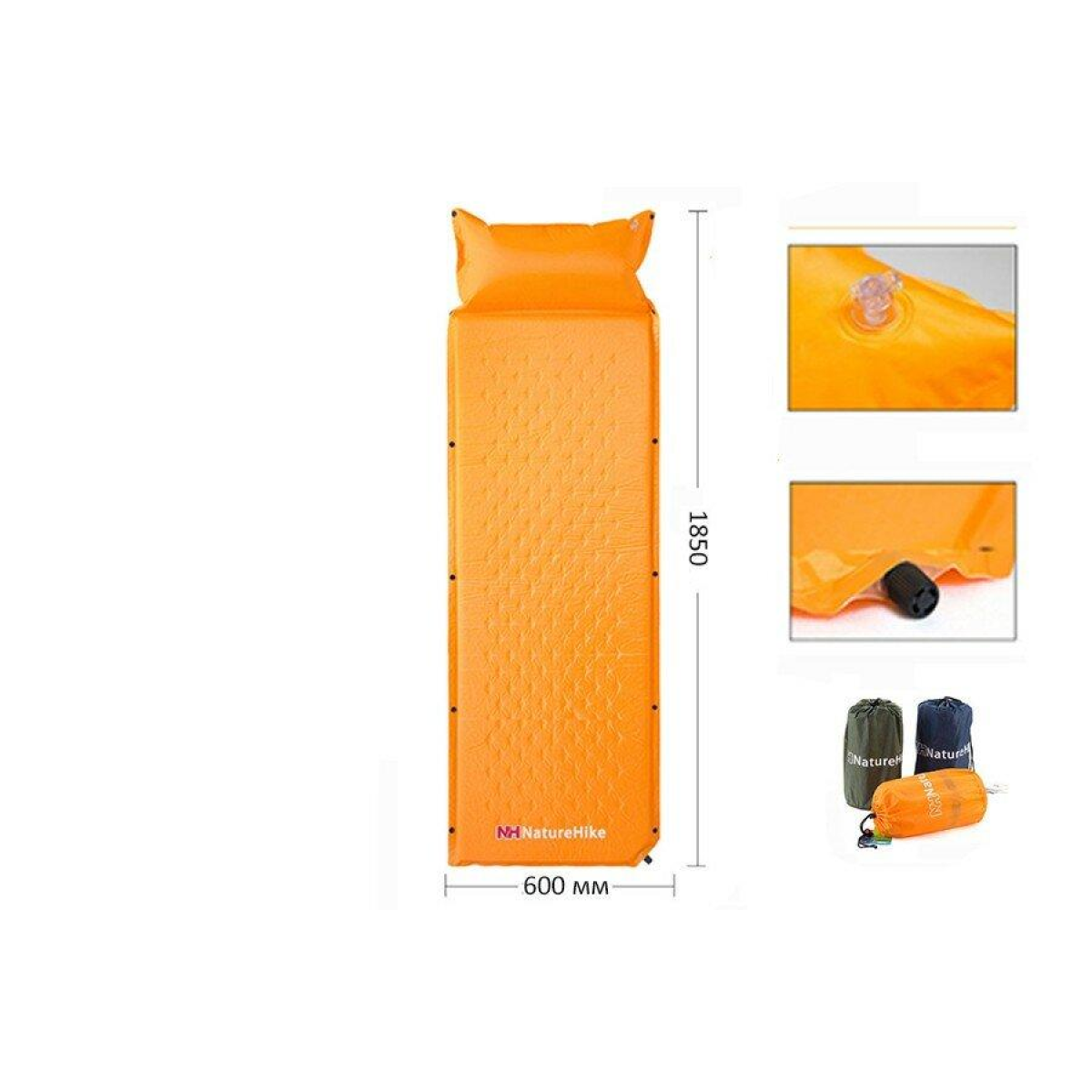 Опис килимка Naturehike NH15Q002-D, 25мм, Блакитний: Самонадувний килим з подушкою для кемпінгу. Зручно застосовувати в туризмі і для різних видів активного проведення часу. Кольори моделі-помаранчевий і темно-блакитний. Килимок компактно складається. Їм дуже легко і просто скористатися на практиці. Спати і відпочивати на подібному килимі буде досить затишно, навіть якщо ви перебуваєте на свіжому повітрі далеко від дому. М“яка подушка комфортно підтримує голову в процесі відпочинку. Габарити в розкладеному положенні складають 1850*600*25 міліметрів. У складеному вигляді розміри становлять 300 * 150 міліметрів. Характеристика: самонадувний килимок для туризму, різних видів активного відпочинку; є комфортна подушка для підтримки голови користувача; простий в застосуванні; розміри в розкладеному вигляді: 1850*600*25 міліметрів; габарити в складеному вигляді: 300 * 150 міліметрів.