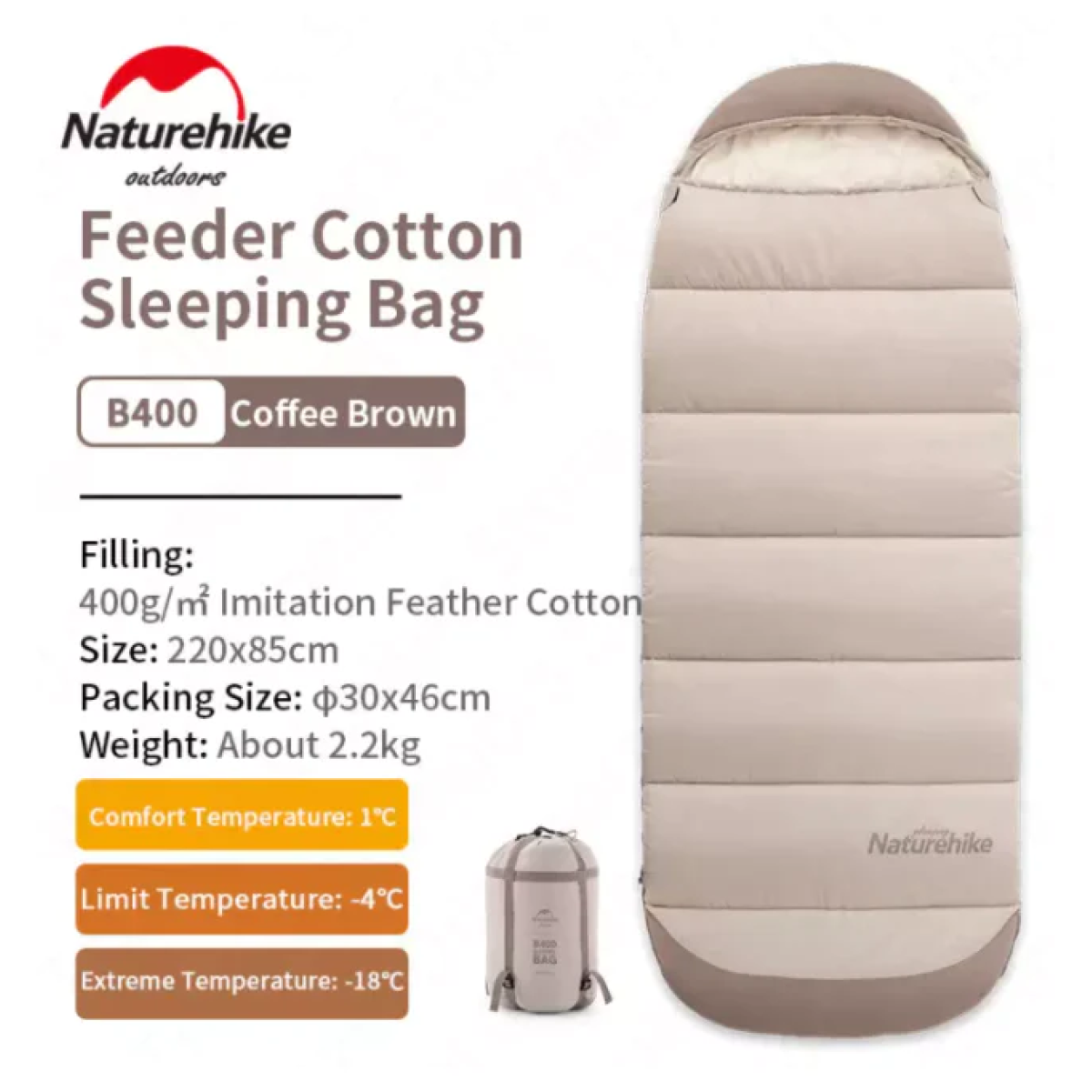Спальний мішок з капюшоном Naturehike B400 NH21MSD11, бежевий