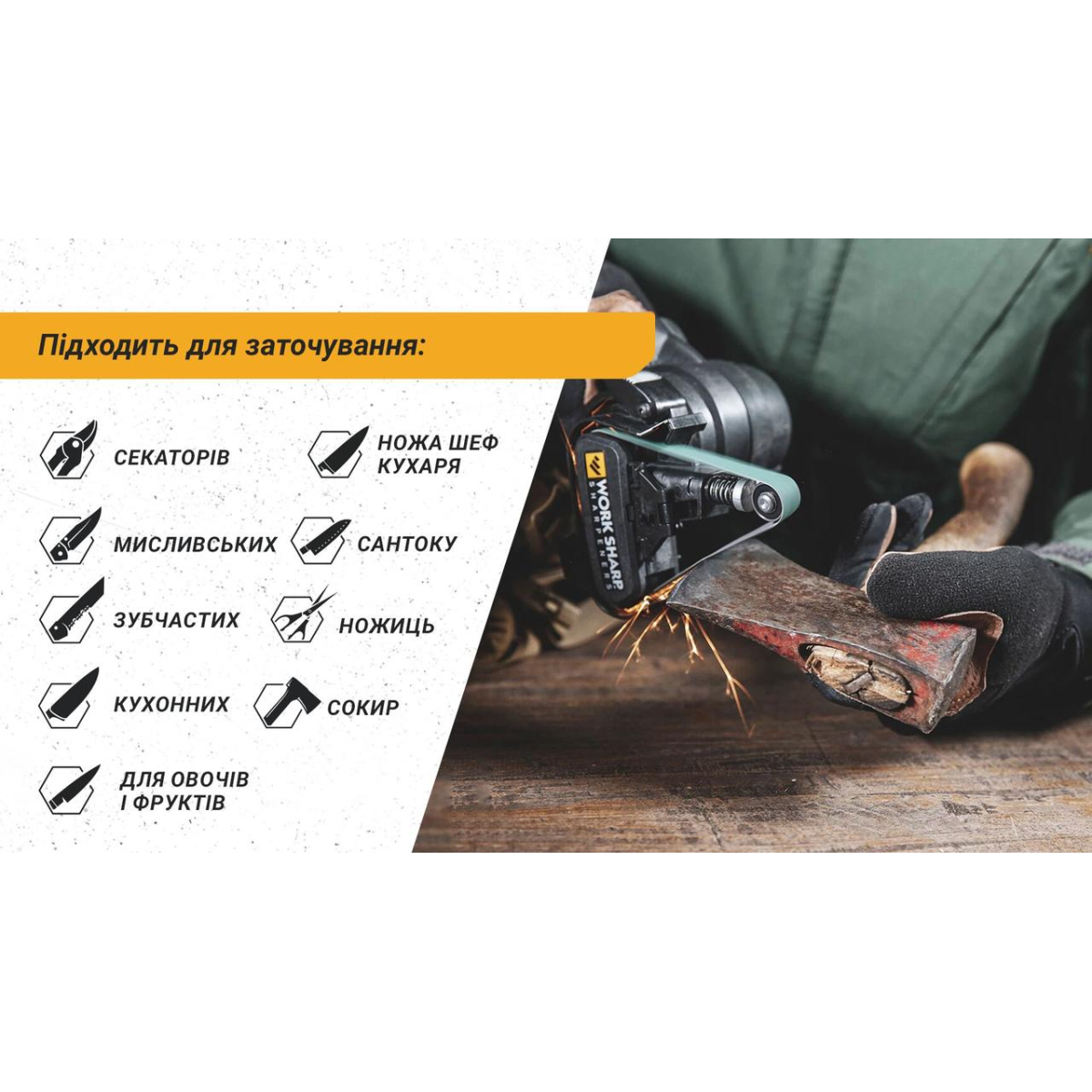 Ремені відповідають кромці будь-якого леза, щоб правити туристичні, кишенькові і Кухонні ножі, навіть зубчасті ножі, ножиці, і багато інших інструментів. Оновлена напрямна для заточування підвищує точність і повторюваність, щоб кожен раз отримувати правильний кут кромки. Вона забезпечена новою шкіряною підкладкою, стійкою до подряпин. Швидка заміна кута заточування для EDC-моделей в 25 градусів до 20 градусів для кухонних ножів за допомогою однієї направляючої.