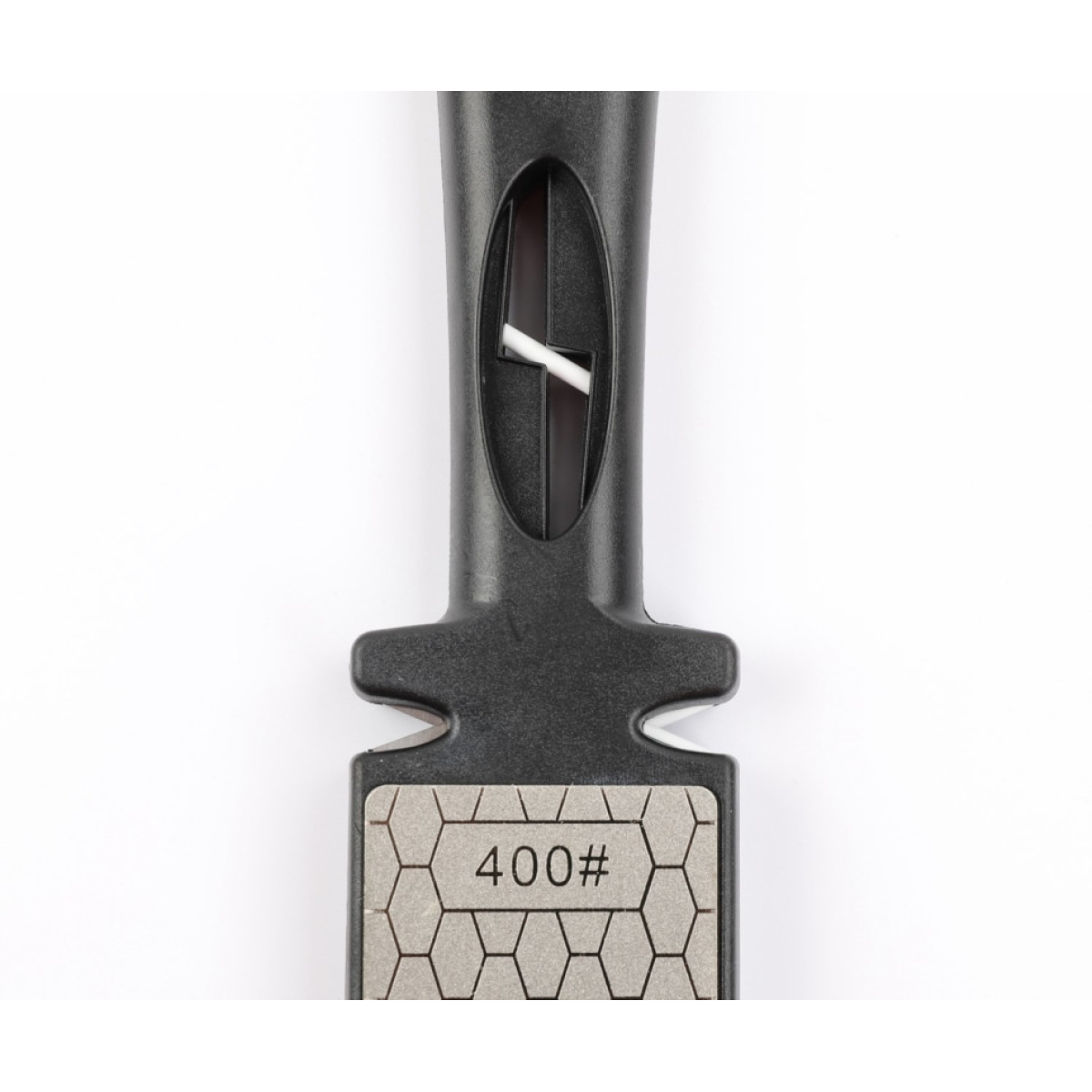 З одного боку знаходиться пластина зернистістю 400 гритів, призначена для грубої заточування леза з формуванням необхідного кута;