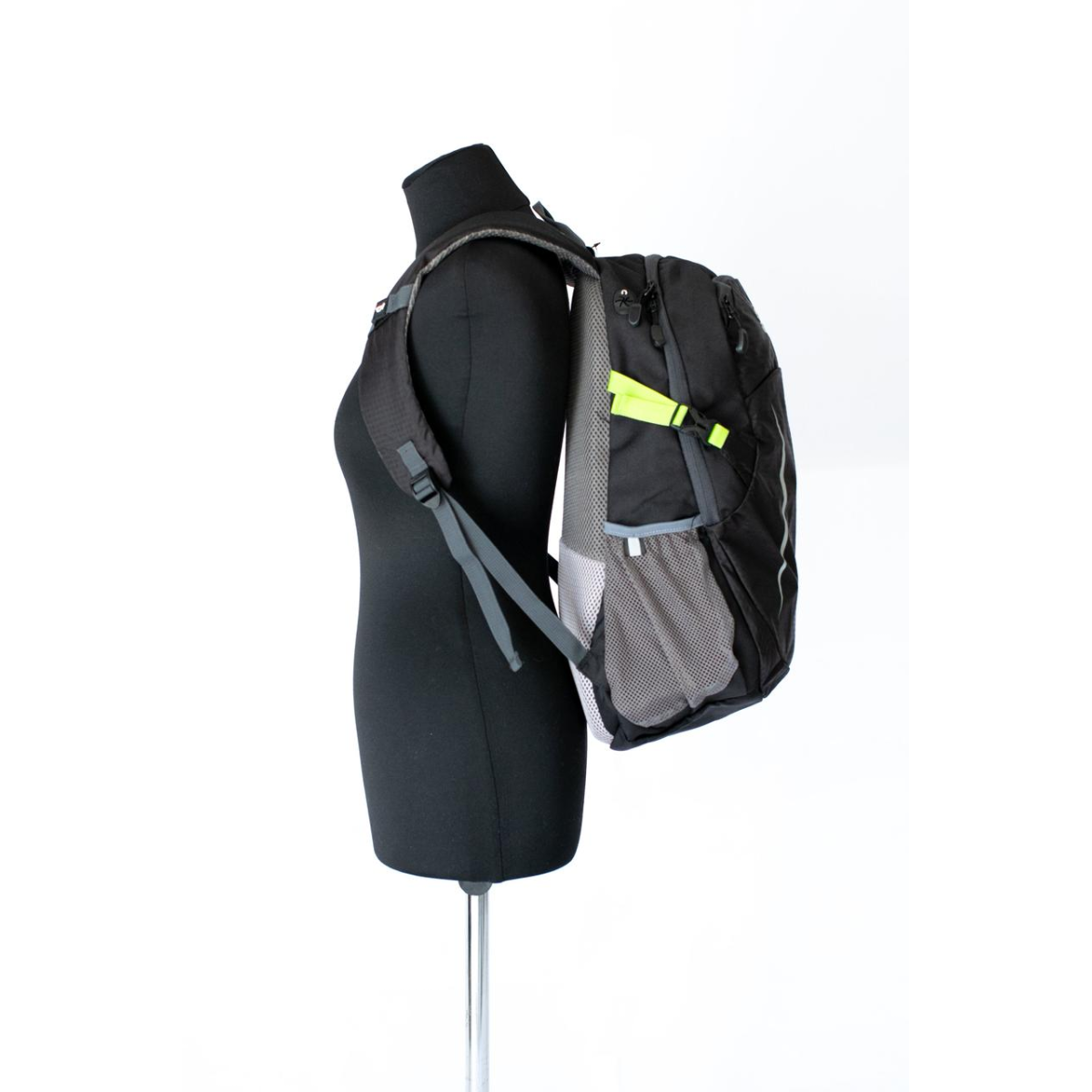 Рюкзак Crossroad чорний Легкий і недорогий молодіжний міський рюкзак Tramp Crossroad на 28 літрів з купою приємних та потрібних функціональних дрібниць для використання під час навчання, занять спортом або просто переміщення по Великому Місту. Особливості: Посторное основне відділення з додатковим кишенькою з сітки для смартфона або mp3 плеєра і виходом для навушників Маленький вертикальний кишеня для дріб“язку на фронтальній стінці Дуже добре ветилируемая спинка з центральним ветиляционным каналом і двома продуваемыми накладками з багатошарової сітки. М“які регульовані лямки анатомічної форми Светотражающая стрічка на правій лямці Спеціальна петелька на лівій лямці для носіння сонцезахисних окулярів 2 бічних зовнішніх кармна з сітки Бічні стяжки компресионные Ручка у верхній частині рюкзака для перенесення в транспорті Посилене дно Характеристики: Матеріал: Поліестер 600 DPU Об“єм: 28л Розміри: 47х30х21 див. Колір: чорний