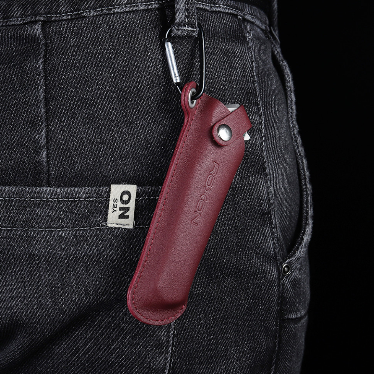 Опис шкіряного чохла для К1; бордового: Стильний чохол від компанії Roxon призначений для носіння фірмового ножа K1 складаного типу. Аксесуар дозволяє зберегти початковий зовнішній вигляд інструменту; запобігаючи появі подряпин на його поверхні та захищаючи від негативного впливу вологи — основної причини появи іржі на металі. Аксесуар виготовлений з натуральної шкіри; що характеризується стійкістю до пошкоджень. Шкіра проста у догляді: щоб усунути забруднення з поверхні матеріалу; достатньо протерти його вологою ганчіркою. Бордовий колір чохла є аналогічним до кольору рукояті одного з ножів K1; доповнюючи дизайн інструменту. Модель не вицвітає під впливом прямих сонячних променів; тому зберігає насичений відтінок протягом усього експлуатаційного терміну. Ніж фіксується у чохлі за допомогою металевої кнопки; яка надійно утримує інструмент усередині та не дає йому випасти під час транспортування. Розміри чохла становлять 142.5 х 60.9 х 8.7 міліметрів. У бічній частині аксесуара є наскрізний отвір. У нього можна просмикнути темляк або кільце з карабіном; щоб пристебнути чохол до пояса або лямки рюкзака. Вага шкіряного чохла складає 13.4 грами. Особливості: зносостійкий чохол для зберігання та транспортування ножа Roxon K1; колір – бордовий; матеріал – натуральна шкіра; застібка у вигляді металевої кнопки; наявність отвору під темляк для носіння на поясі; розміри – 142.5 х 60.9 х 8.7 мм; вага – 13.4 г.