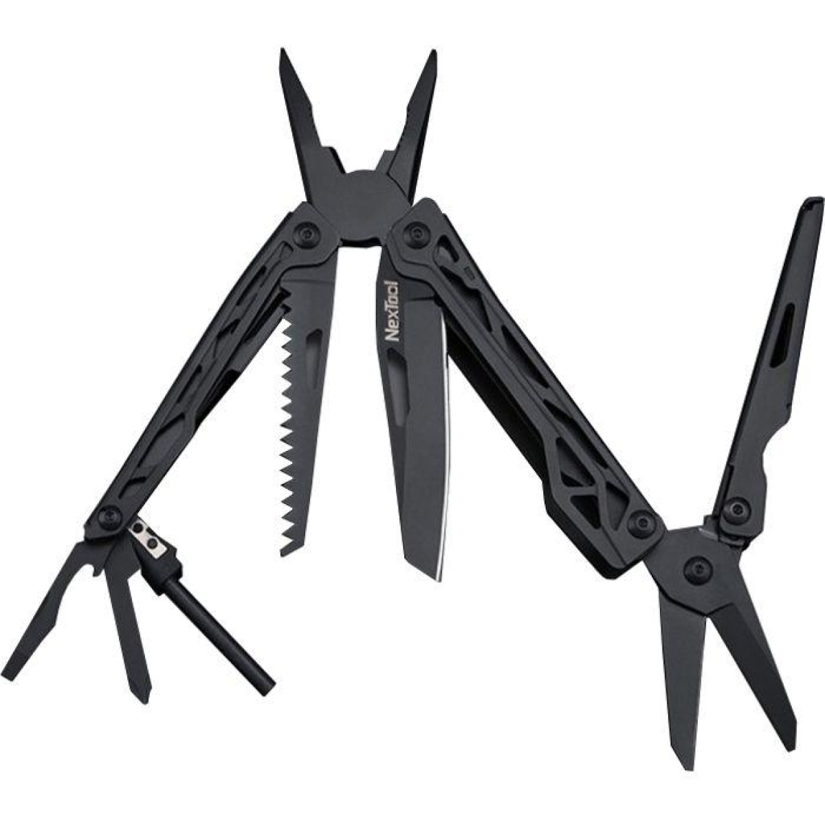 Виняткова надійність Сучасний мультитул вирізняється високою міцністю і надійністю. Інструмент виконаний з легованої сталі і загартований до твердості 50 HRC, тому він не боїться зносу, подряпин, корозії та інших механічних пошкоджень. Крім того в процесі виробництва збільшується міцність і точність мультитула, а також ретельно контролюється процес складання, що гарантує відповідність найвищим стандартам якості. Десять інструментів в одному корпусі NexTool Natuo повністю замінить цілий ящик інструментів. Він чудово поєднує в собі ножиці, плоскогубці, ніж, пилку, викрутку, кресало і багато інших інструментів. Усе це розміщено в одному корпусі й дає змогу в будь-який момент виконати завдання із закручування, різання або обтиснення. Повнорозмірні ножиці На відміну від інших інструментів мультитул NexTool Natuo має повнорозмірні ножиці, які дають змогу здійснювати будь-які операції. Вони ділять одну рукоятку з плоскогубцями, плавно рухаються і мають гостру ріжучу кромку. Це дає змогу легко розрізати папір, картон, тканину і навіть тверду мотузку. Компактність і комфорт У складеному стані довжина мультитула не перевищує 11 см, завдяки чому інструмент легко поміщається в невеликій кишені або сумці. Завдяки ергономічній формі він чудово лежить у долоні, а спеціальні вирізи дають змогу дістати пилку, ніж, викрутку або інший інструмент легким рухом руки. Бездоганна якість Мультитул NexTool Natuo складається з 48 деталей, які відмінно між собою взаємодіють і не підведуть у відповідальний момент. Завдяки передовим методам і технологіям вдається досягати бездоганної якості збірки. Деталі щільно прилягають одна до одної й утворюють єдиний інструмент для виконання найрізноманітніших завдань. Приємний зовнішній вигляд Завдяки воронінню інструмент повністю захищений від іржі та має глибокий чорний колір. Шар окису, що виникає в процесі обробки, забезпечує металу надійний захист від зовнішніх впливів, тому мультитул зберігає свій первинний зовнішній вигляд протягом довгих років експлуатації. Він відмінно доповнює будь-який стиль і радує око при кожному погляді.