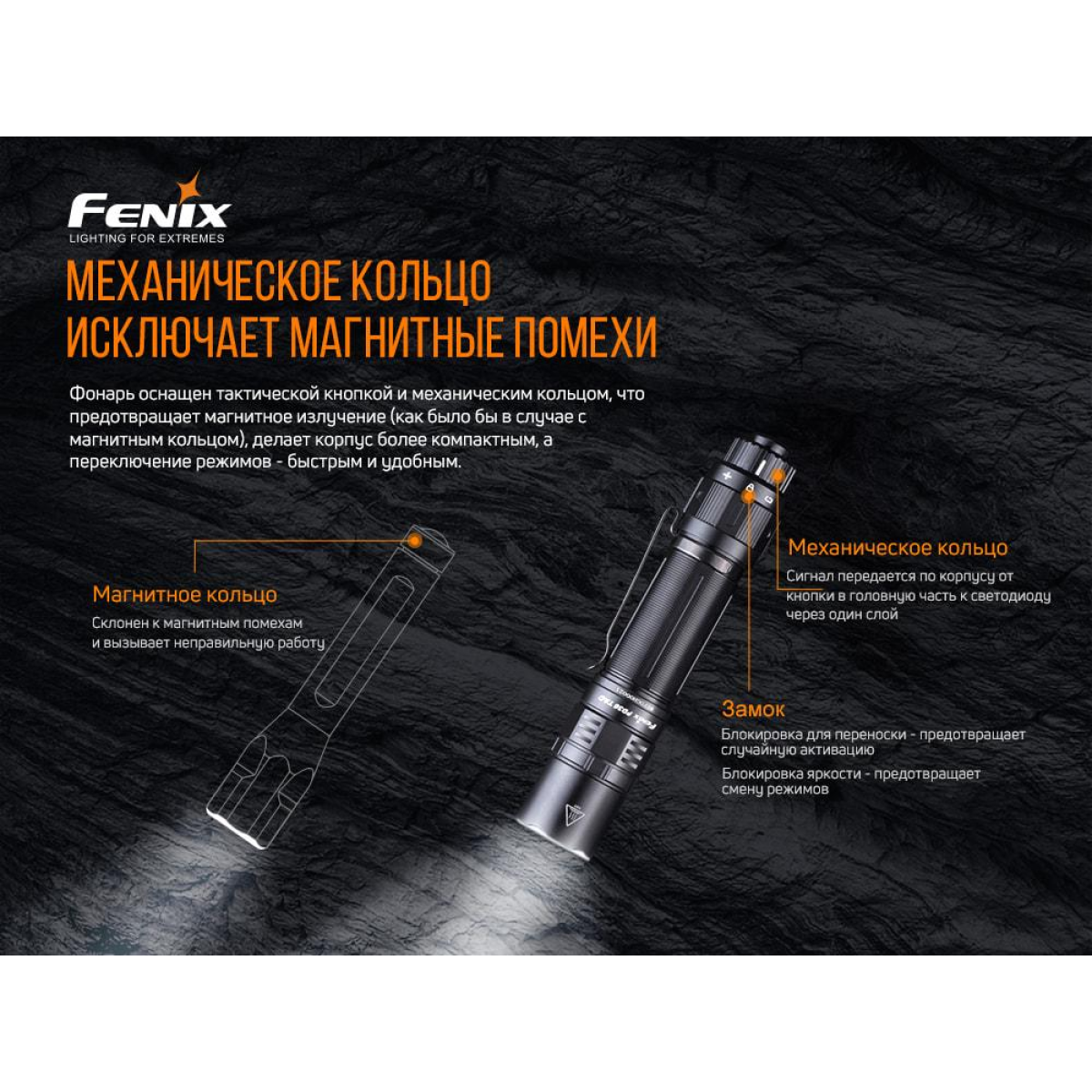 Потрібно згадати, що Fenix PD36TAC захищений від перегрівання корпусу. При роботі акумулюється велика кількість тепла. Тому передбачили функцію скорочення яскравості. Вона за замовчуванням активується, якщо температура корпусу перевищує 60 градусів Цельсія. Коли температура знижується, можна знову вибирати високі режими.