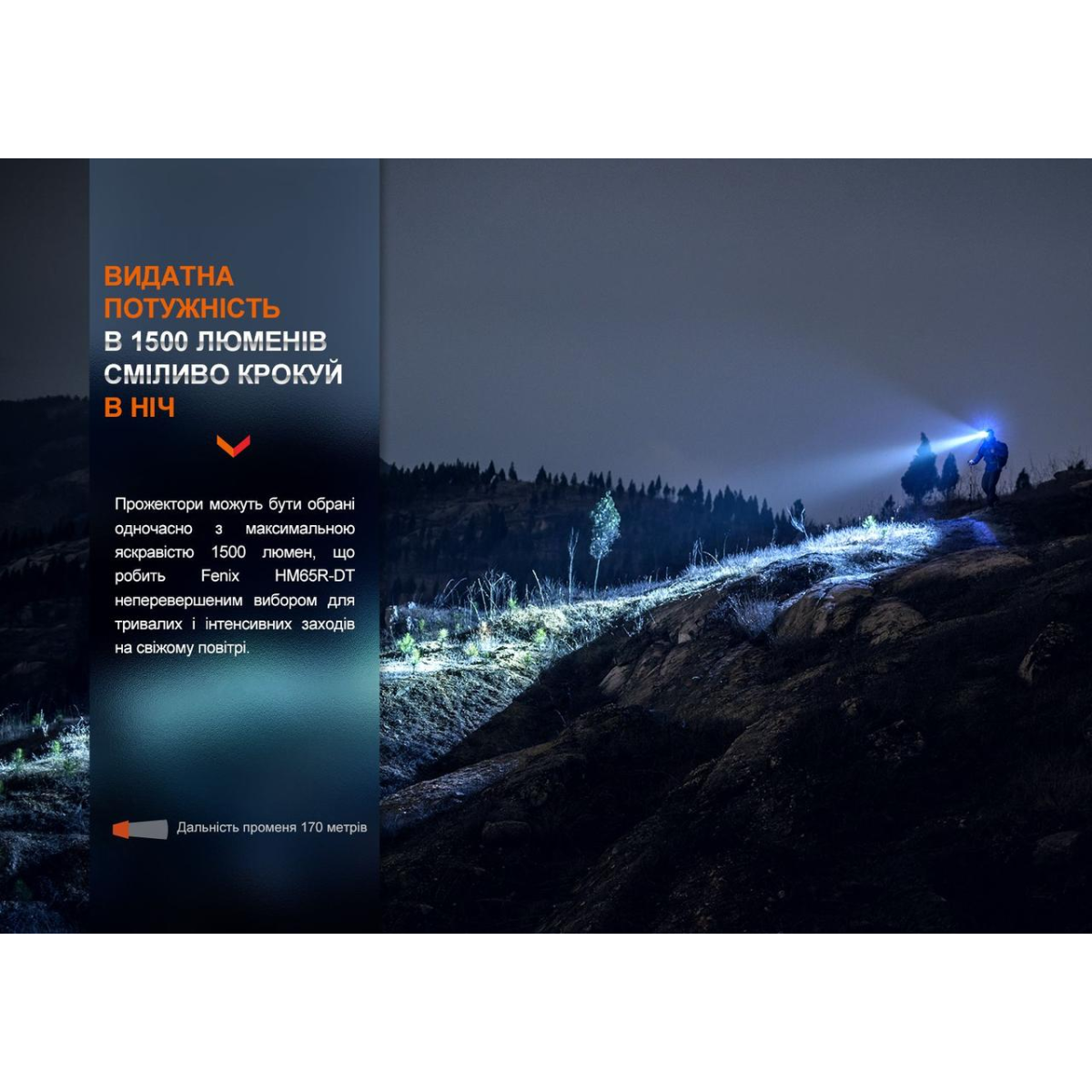 Функціональні особливості та конструкція Fenix HM65R-DT розроблені з урахуванням потреб спортсменів, які не звикли відмовлятися від тренувань у темний час доби. Ліхтар із налобним кріпленням також підходить для туризму та активного відпочинку, оскільки освітлює дистанцію до 170 метрів і при цьому звільняє обидві руки для інших дій.