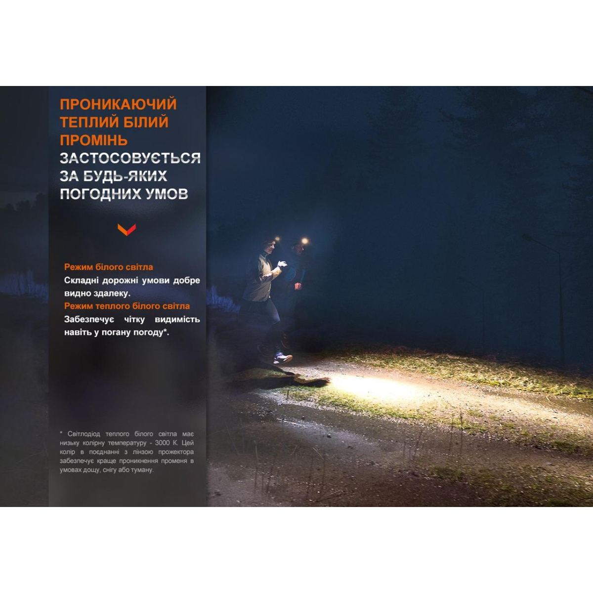 Під час носіння ліхтаря на голові користувач може виставляти комфортний кут освітлення, використовуючи його для підсвічування шляху під ногами або далеких об“єктів. Зафіксована на кріпленні модель регулюється в межах 60°.
