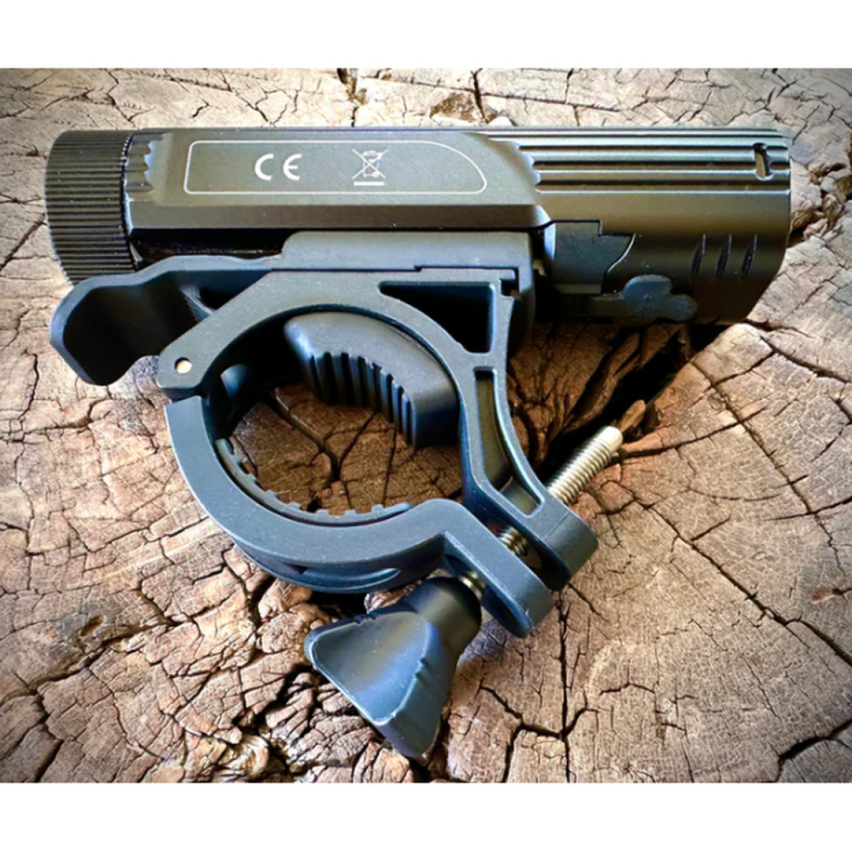Ключова перевага кріплення — регульована конструкція. Щільність фіксації налаштовується за допомогою обертового регулятора, що дозволяє ідеально підігнати кріплення під розмір керма. Ремінець регулюється по горизонталі під кутом у межах ±15°, даючи можливість точно налаштувати напрямок світла. До того ж він фіксується по вертикалі у будь-якому положенні, що збільшує зручність експлуатації.