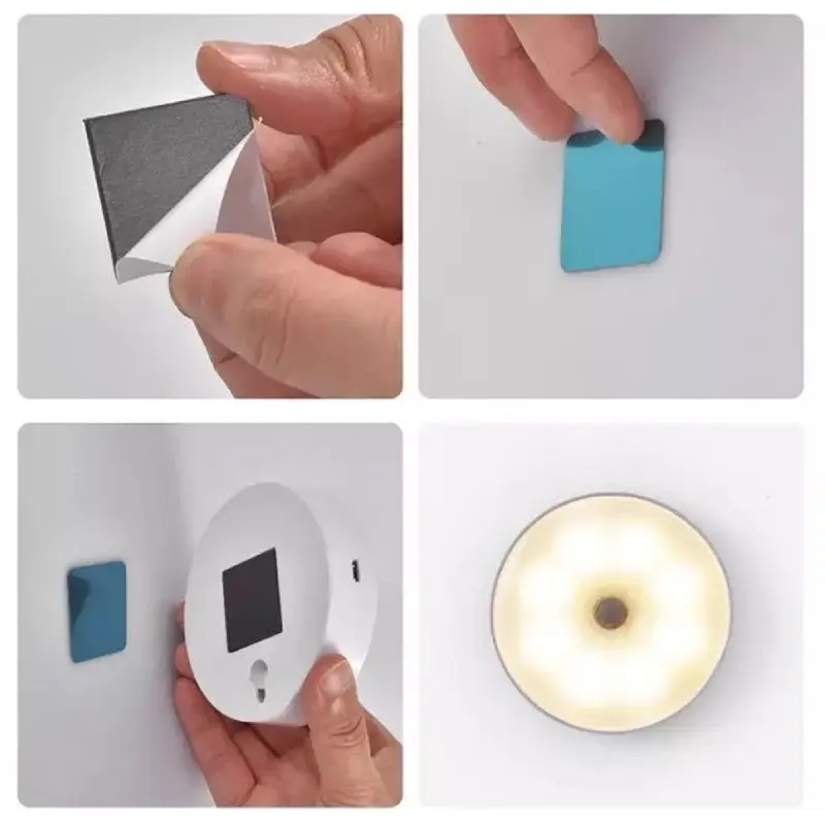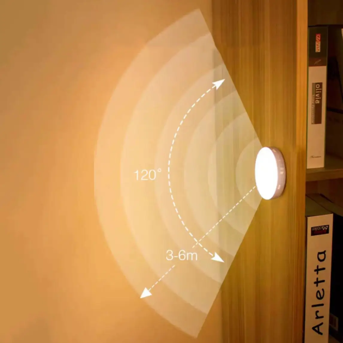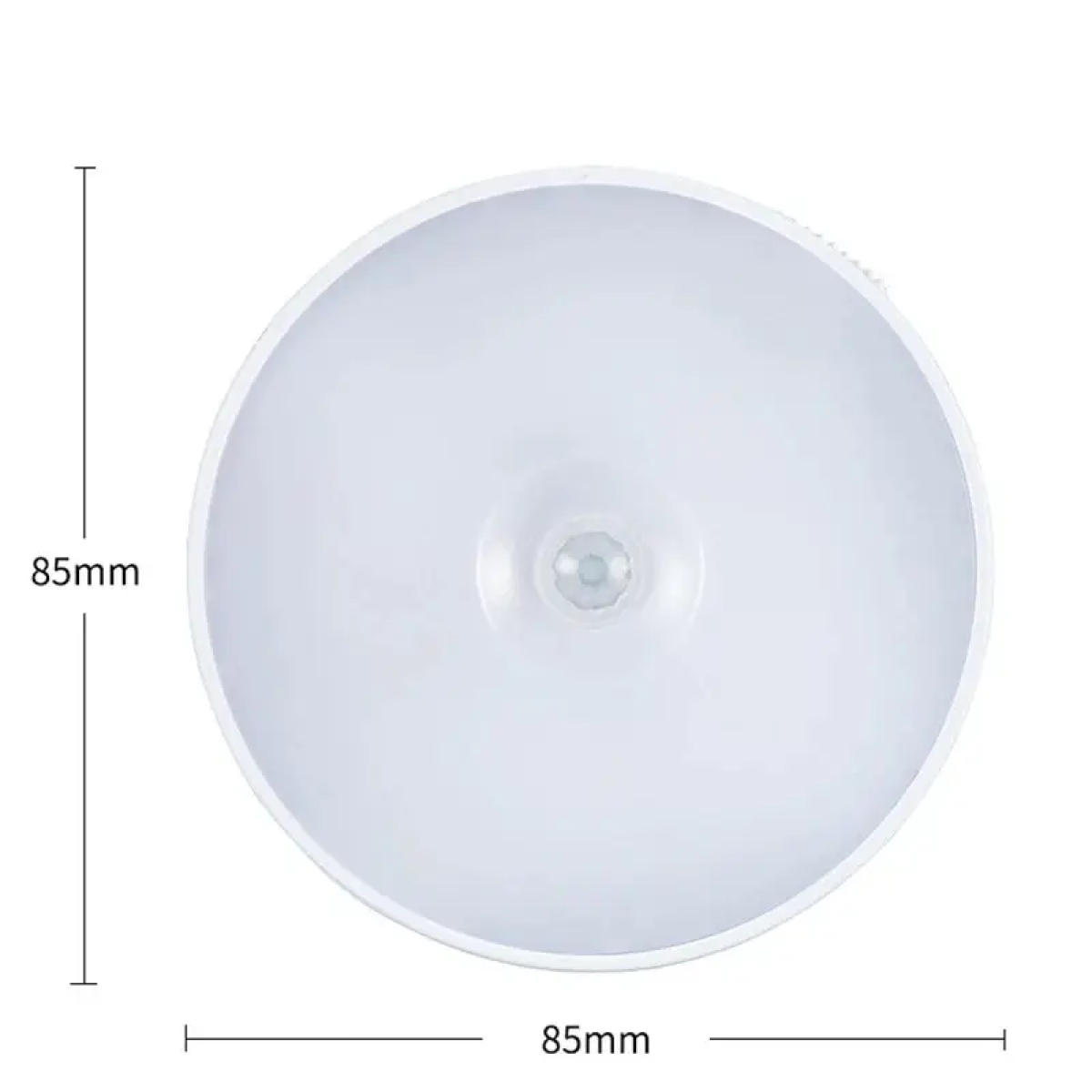 Світильник нічник бездротовий з датчиком руху (3000K ), який автоматично вмикається при виявленні руху та вимикається, коли об“єкт залишає радіус виявлення. Встановлюється в будь-якому місці будинку, офісу або гаража, де потрібне автономне освітлення. Наприклад, біля поличок, сходів, у ванній, коридорі, вбиральні, кухні і т.д. Світить до 8 годин на акумуляторі не втрачаючи яскравість (постійне свічення), має 8 світлодіодів, режим свічення: за датчиком руху в темряві (в цьому режимі свічення до 2 тижнів), на освітленій поверхні не працює. Кількість світлодіодів: 8 штук Колірна температура: 3000 К Дальність виявлення: прим. 3 м Кут виявлення: 100 ° Автоматичне вимкнення після 30 секунд відсутності руху Методи встановлення: отвір для підвішування, на клейку стрічку (у комплекті), або на магнітну основу Вбудований акумулятор, зарядка від MicroUSB (кабель у комплекті) Колір світіння: білий Розмір світильника: 8.5х 2.0см Вага: 50 г