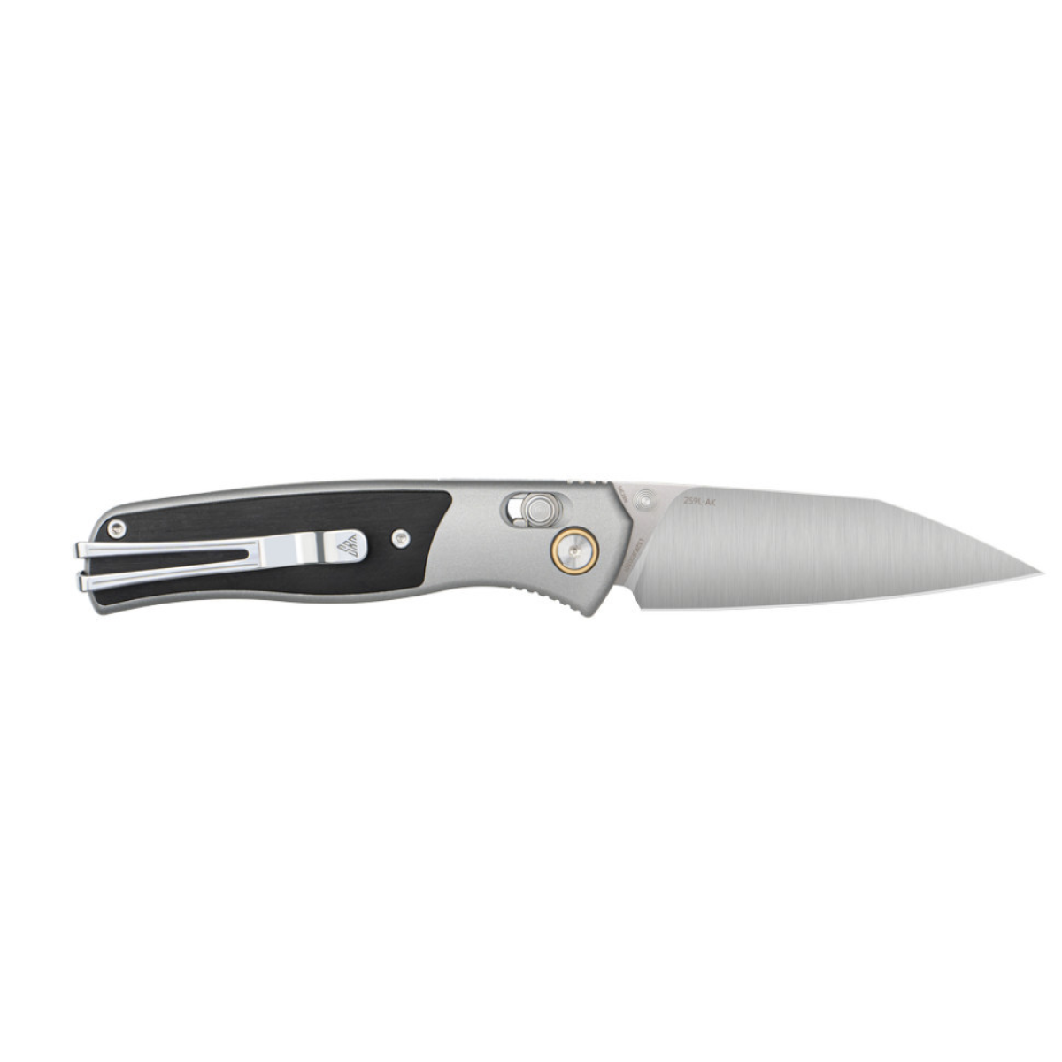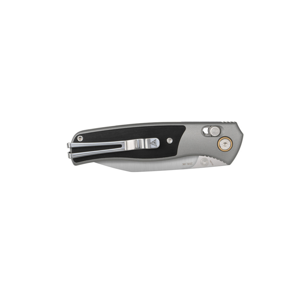 Опис складаного ножа SRM Medal 259L-AK, чорно-сірого: Ніж SRM 259L-AK є частиною серії Medal, яка призначена для щоденного носіння, походів та пікніків. Дизайн відрізняється простотою та елегантністю, ідеальною для кишенькової EDC-моделі. Клинок з профілем зворотний танто має гострий посилений кінчик для роботи на проколювання, водночас подовжена пряма кромка демонструє акуратне різання. В основі вузла знаходяться керамічні підшипники, які забезпечують швидке відкриття конструкції без ривків. У ножі SRM Medal 259L-AK використані такі матеріали: Клинок зі шведської сталі Sandvik 14C28N. Нержавіюча сталь загартована до твердості 57–59 HRC та легована азотом, що покращує корозійну стійкість без втрати стабільності різання. Кромка довго тримає гостроту, витримує високі навантаження та швидко заточується — для цього можна використовувати звичайні абразиви середньої і дрібної зернистості. Матовий фініш знижує відблиски та приховує сліди експлуатації. Руківʼя з анодованого алюмінію 6063. Сплав несприйнятливий до корозії та окислення, зберігаючи зовнішній вигляд навіть після тривалого контакту з водою та хімією. Вставки з чорного ебенового дерева додають хвату чіпкість, покращуючи контроль у холодну погоду та у вологій долоні. Для відкриття ножа потрібно натиснути пальцем на двосторонній шпеник, зручний для взаємодії як правою, так і лівою рукою. Клинок фіксується за допомогою пластини замка Ambi Lock (різновид механізму Crossbar Lock), розрахованого на навантаження різної інтенсивності. У хвостовій частині встановлено запатентовану кліпсу Ambi Clip формату Tip-Up. Положення затискача можна швидко міняти під провідну руку без використання допоміжних інструментів. Характеристики: колір – чорно-сірий; профіль клинка – зворотний танто; матеріал клинка – шведська нержавіюча сталь Sandvik 14C28N; твердість клинка – 57-59 HRC; тип заточування – прямий; спосіб відкриття – двосторонній шпеник; керамічні підшипники в осьовому вузлі; тип запірного механізму – замок Ambi Lock (Crossbar Lock); матеріал руківʼя – анодований алюміній 6063 + чорне дерево; є сталева кліпса Ambi Clip; повна довжина – 193 мм; довжина клинка – 81 мм; товщина в обуху – 2.6 мм; вага – 75 г.