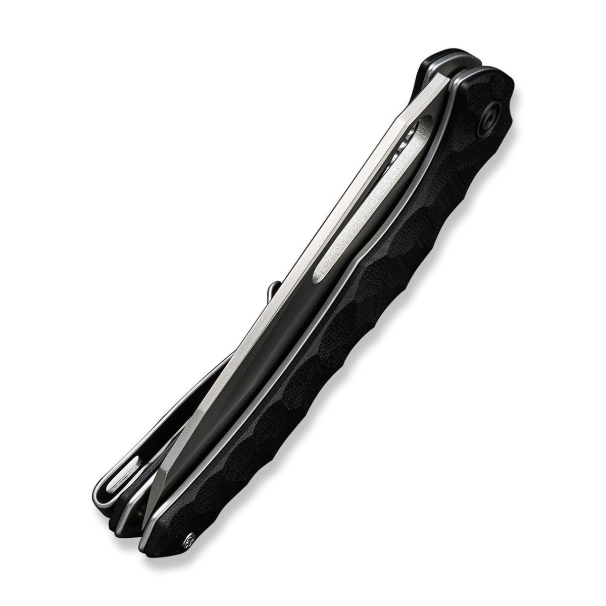 Ручка виконана зі склотекстоліту G10 - це композитний матеріал на основі склотканини та епоксидної смоли. У процесі виробництва скловолокно вимочується у смолах, після чого піддається стиску. В результаті матеріал стійкий до впливу факторів навколишнього середовища, ніж може використовуватися в несприятливих умовах. G10 міцний і ударостійкий матеріал, відмінно переносить контакт з вологою і добре піддається фарбуванню. Зовні цей матеріал дуже схожий на мікарту, але перевершує її в міцності та вогнестійкості.