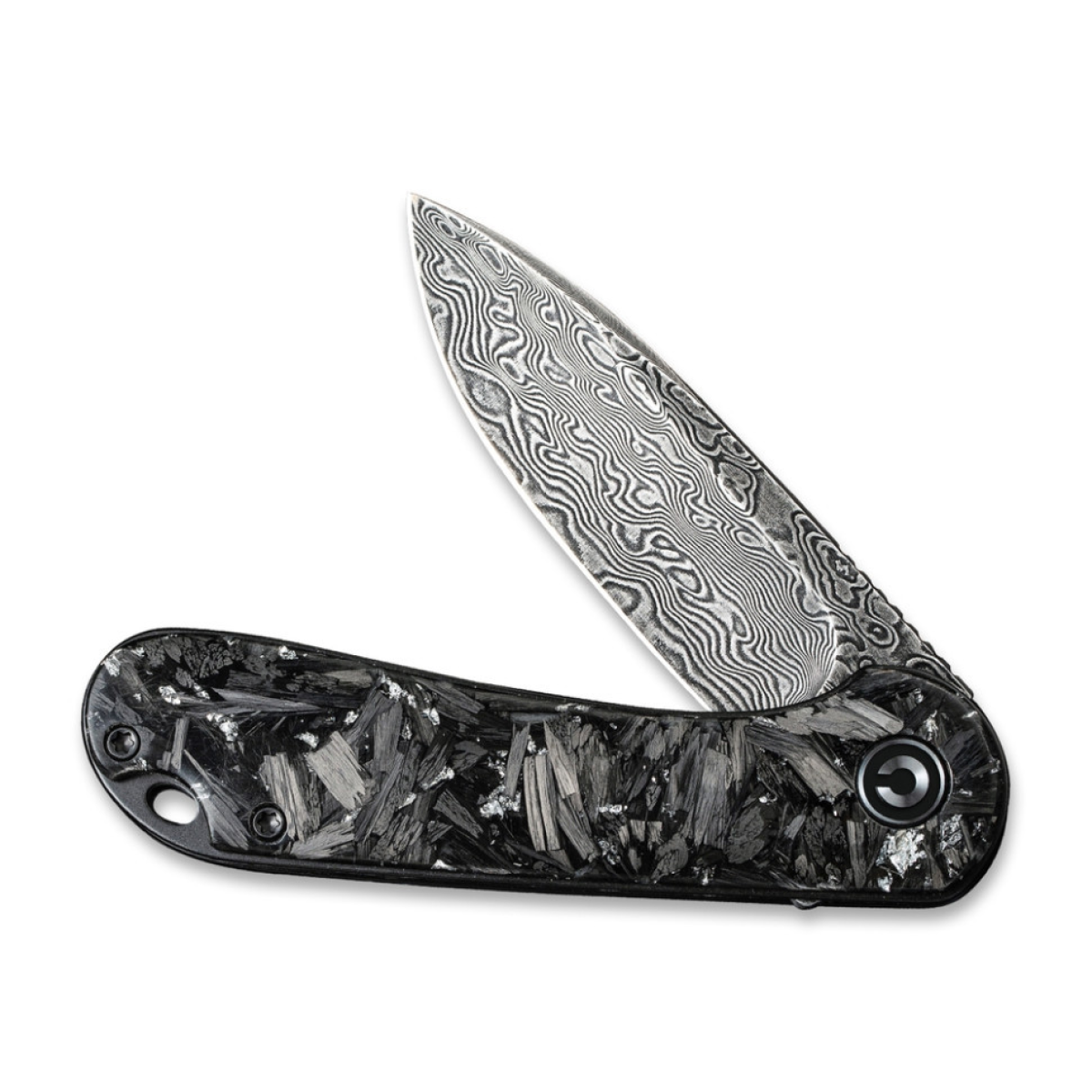 Опис складаного ножа Civivi Elementum C907C-DS2:Модель Civivi Elementum — це стильний EDC ніж, який є бестселером асортименту, завоювавши серця ножаманів у всьому світі завдяки поєднанню функціональності, ергономіки та естетичної краси. Клинок довжиною 75.2 мм має класичну форму drop point, яка дозволяє виконувати інструментом завдання широкого спектру. При цьому руківʼя з плавними вигинами надійно лягає у долоню, що робить експлуатацію гранично безпечною.Лезо моделі виготовлено з дамаської сталі. Метал характеризується міцністю, тривалістю утримання заточування та твердістю в межах 58-60 HRC. Приємний бонус — унікальний зовнішній вигляд сталі. Оскільки до її складу входить кілька металів, поверхня клинка покрита дрібними візерунками, які є яскравою прикрасою загального дизайну.Плавне відкривання клинка забезпечується завдяки керамічним кульковальникам в основі конструкції. Щоб відкрити лезо до фіксації, достатньо натиснути на плавець з нержавіючої сталі. Ніж відкривається з характерним клацанням, що вказує на готовність інструменту до роботи. Як запірний механізм використовується замок liner lock.Руківʼя ножа не поступається клинку в ефектності. Матеріал накладок — вуглецеве волокно (карбон) із включенням частинок смоли. З сильних сторін карбону: стійкість до зношування, ударних навантажень, впливу високих і низьких температур, а також несприйнятливість до вологи. На руківʼї можна закріпити темляк — для цього передбачено хвостовий отвір.З правого боку руківʼя є чорна кліпса зі сталі. Разом з нею складаний ніж важить 77.7 грамів.Характеристики:складаний EDC ніж, бестселер бренду Civivi у новому дизайні;клинок з дамаської сталі;твердість клинка – 58-60 HRC;форма клинка – drop point;тип заточування – прямий;блокувальний механізм – замок liner lock;матеріал руківʼя – вуглецеве волокно + смола;є однопозиційна кліпса з нержавіючої сталі;повна довжина – 177.6 мм;довжина клинка – 75.2 мм;товщина клинка – 3 мм;довжина руківʼя – 102.4 мм;товщина руківʼя – 12.6 мм;вага – 77.7 г.