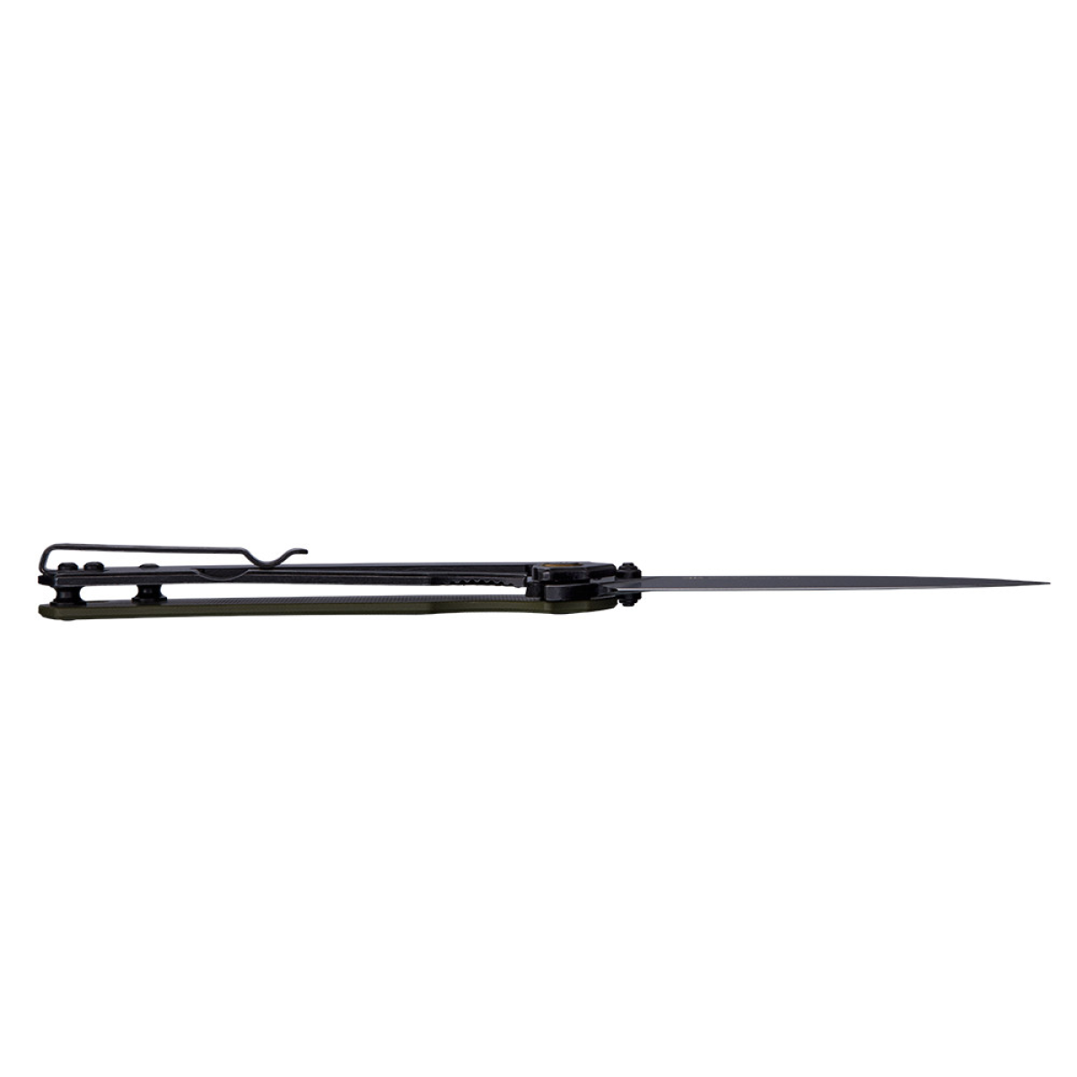 Конструкція може похвалитися варіативністю відкривання: за допомогою плавця або шпенька, інтегрованого з обох боків клинка. Довжина ножа у відкритому вигляді сягає 200 мм. Підшипник забезпечує плавний хід леза, яке у відкритому положенні фіксується за допомогою запірної пластини замка frame lock. Якщо ножем потрібно виконати грубу роботу, модель надає таку можливість завдяки ребристому упору для пальця. Товщина клинка в обуху становить 3.1 мм.
