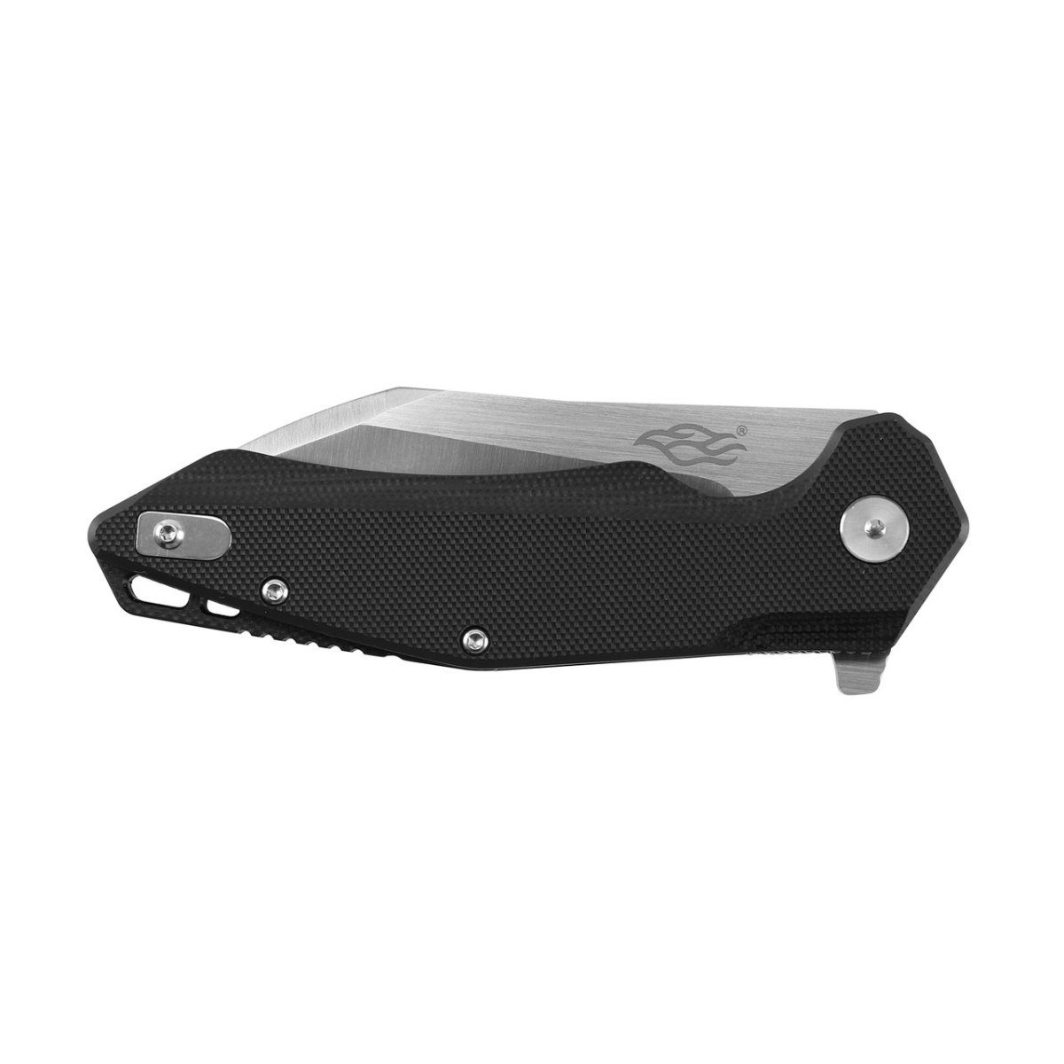 Довжина клинка цілком достатня, щоб з його допомогою було зручно виконувати всі основними різновиди робіт. Вона становить 86 мм. При цьому більшу міцність лезу гарантує товщина по обуху, рівна 3 мм. Форма клинка незвичайна для бренду Firebird - це Wharncliffe. Для такої форми характерна абсолютно пряма ріжуча кромка, наявність фальшлезвия на обуху, а також гостро заточений кінчик леза. Також необхідно сказати, що поверхня ножа відшліфована методом сатинування, за рахунок чого поверхня стали нагадує атлас, на якому видно безліч ледве помітних рисок. Такі ножі менше блікують, а невеликі подряпини на їх поверхні залишаються непомітними.