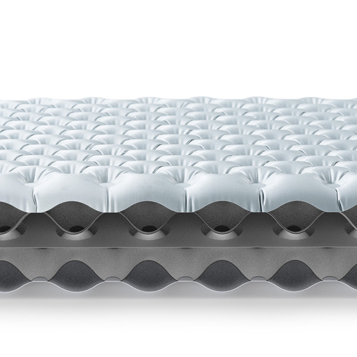 Матрац надувається через стандартний бічний клапан, сумісний з мішками-насосами (не входить до комплекту). Товщина при надуванні досягає 8 см, створюючи достатньо товстий прошарок між тілом і землею, що особливо важливо під час відпочинку на нерівній, вологій або холодній поверхні. Рельєфний дизайн з безліччю дрібних повітряних камер сприяє рівномірному розподілу ваги та підтримці спини, шиї та ніг.