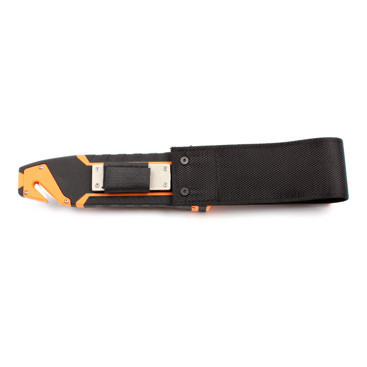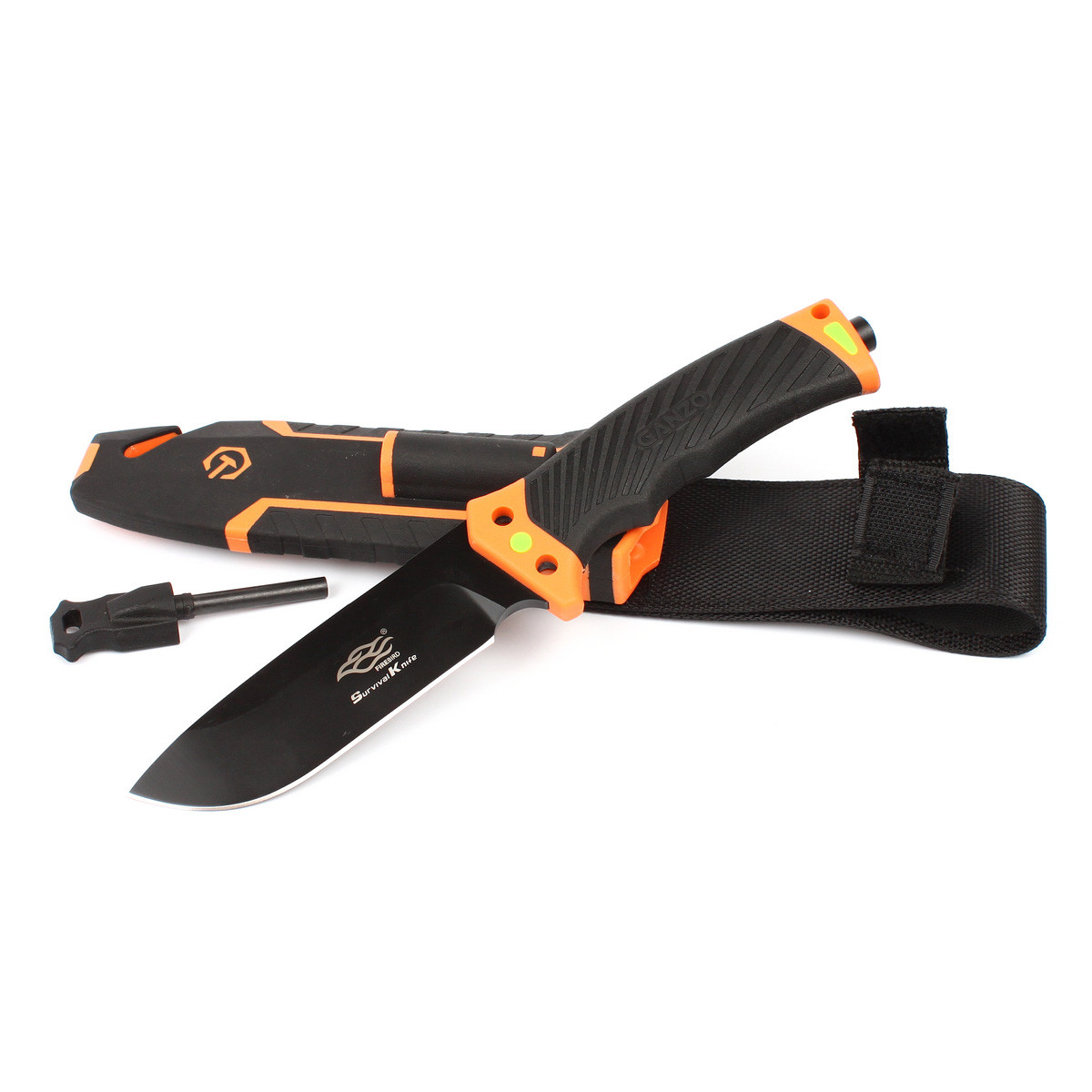 Опис ножа Firebird F803: Ніж Firebird F803 є нескладним, а тому відмінно пристосований для виконання різноманітних робіт з великими навантаженнями. Зокрема, дану модель високо цінують мисливці, рибалки і туристи. Володіє Firebird F803 та іншими важливими перевагами. Лезо ножа не іржавіє, оскільки виготовлена зі сталі 8CR13, що має високий рівень захищеності від корозії. До того ж, вся поверхня клинка покрита спеціальною чорною фарбою, яка виступає механічним бар“єром для будь-якого негативного впливу на метал. Під час використання ножа вона не стирається, але покриття варто берегти під час заточування леза. Довжина клинка даної моделі досягає 113 мм. Серйозність габаритів підкріплена і товщиною обуха, що дорівнює 5 мм. Заточування ріжучої кромки зроблена гладкою, щоб ріжучі характеристики ножа були універсальними Рукоятка відмінно пристосована для комфортної роботи. Вона зроблена з термопластика з великим запасом міцності, а поверхня матеріалу — прогумована, щоб ніж не вислизав з рук. Основний колір рукоятки — чорний, але окремі елементи зроблені яскраво оранжевими, щоб клинок був добре помітним на різних поверхнях. А щоб знайти його не склало труднощів навіть у темряві, на рукоятці є пара невеликих світлонакопичувальних елементів. В якості додаткового інструменту, на торці рукоятки є невеликий склобій. Піхви для моделі Firebird F803 виготовлені дуже якісно і максимально продумані. Вони зроблені з нейлону і пластику. Клинок в піхвах повністю закритий і захищений від бруду і вологи. Ніж щільно сидить всередині, а самі піхви застібаються на липучку. На кінці ножів (з боку, зворотної тій, куди вставляється ніж) вбудований стропоріз, який може знадобитися в будь-яких екстрених ситуаціях. Крім того, в піхвах закріплений алмазний точильний камінь, щоб гостроту цього клинка можна було поєднувати коли і де це буде потрібно. Також в піхвах є кресало. Особливості: туристичний ніж з фіксованим клинком; в комплект входять практичні піхви; лезо виготовлене з нержавіючої сталі 8CR13; виконана гладка заточування ріжучої кромки; довжина леза становить 113 мм; клинок має товщину по обуху 5 мм; лезо ножа вкрите чорною фарбою; рукоятка має зручну прогумовану поверхню; серед додаткових функцій — склобій, стропоріз, точилка, кресало; ніж важить 349 грам; довжина з урахуванням рукоятки — 243 мм Гарантія: Кожен покупець ножа Firebird F803 протягом року може скористатися гарантією на нього.