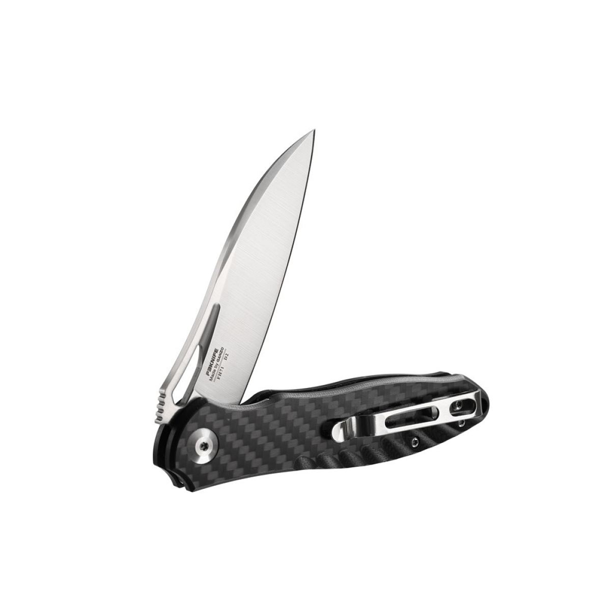 Колекція EDC-ножів відомого бренду Firebird поповнилася новим екземпляром. Ніж отримав назву FH71-CF. Це складний фліппер, який корисний в побуті, на полюванні, в подорожі, на вилазці, в туристичному поході. Специфіка моделі полягає в наявності характерних виїмок на рукоятці. Вони надають ножу певну естетику. Колір рукояті темно-сірий, послужило матеріалом вуглецеве волокно.