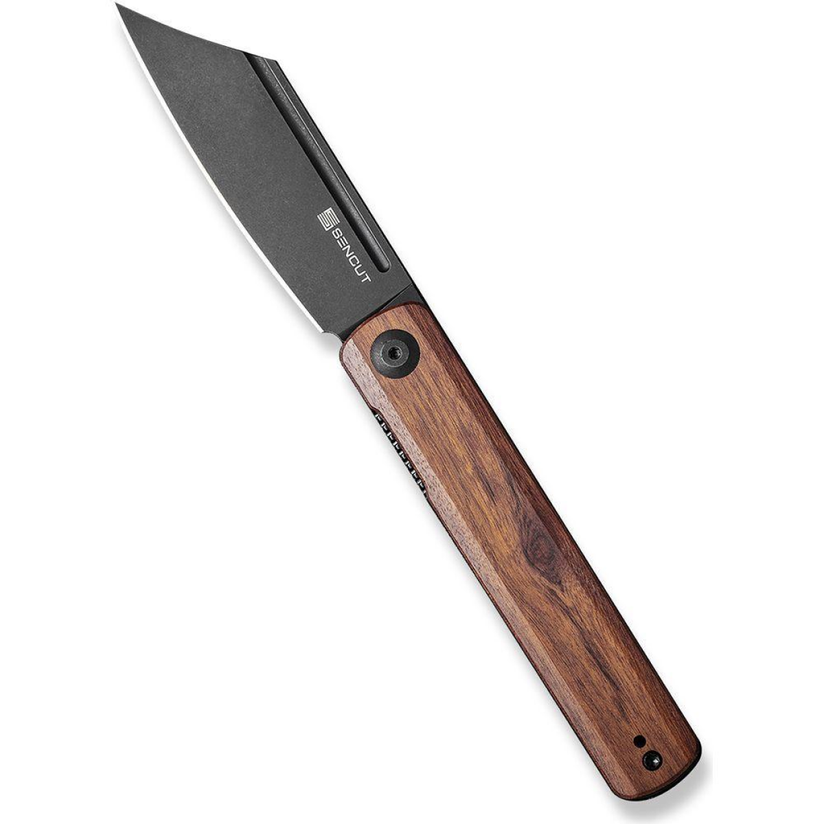 Опис складаного ножа Sencut Bronte SA08EЛезо вивільняється за допомогою фліпера. Цей механізм працює дуже плавно завдяки керамічним підшипникам, що розміщені в центрі. Саме ця модель відрізняється надзвичайно гострою та надійною ріжучою кромкою, яка справляється з безліччю завдань.Матеріал леза 9Cr18MoV – особливий сплав, який характеризується міцністю і довговічністю. Цей метал захищений від корозії, демонструє хорошу зносостійкість. За основними властивостями сталь близька до 420HC. Твердість загартування складає до 58 HRC.Лезо має додаткове покриття Black Stonewashed для маскування дрібних подряпин . Невелика товщина леза в поєднанні з гарним заточуванням забезпечує високу ефективність процесу різання. Таке лезо довго зберігає гостроту, заточити ніж в домашніх умовах досить просто.На відміну від інших ножів цього бренду, ручка ножа виготовлена з натурального матеріалу високої якості. Ручка Guibourtia виготовлена з дерева гібурція. Красива темна деревина твердих порід, яка чудово лежить у руці.Також ніж має зручну кліпсу для носіння. Можна прикріпити її до будь-якої сторони ножа, таким чином буде зручно носити ніж як з правого боку, так і зліва.Sencut Bronte SA08E – це чудовий інструмент для повсякденного використання та виконання різноманітних завдань під час активного відпочинку, кемпінгу, а також риболовлі. Такий складаний ніж також може стати гарним варіантом для подарунка для поціновувачів ножів.Особливості:гострий та надійний;відкриття за допомогою переднього фліпера;кишеньковий затискач підходить для обох рук;універсальність використання;матеріал леза - 9Cr18MoV;загальна довжина складає 20 см.