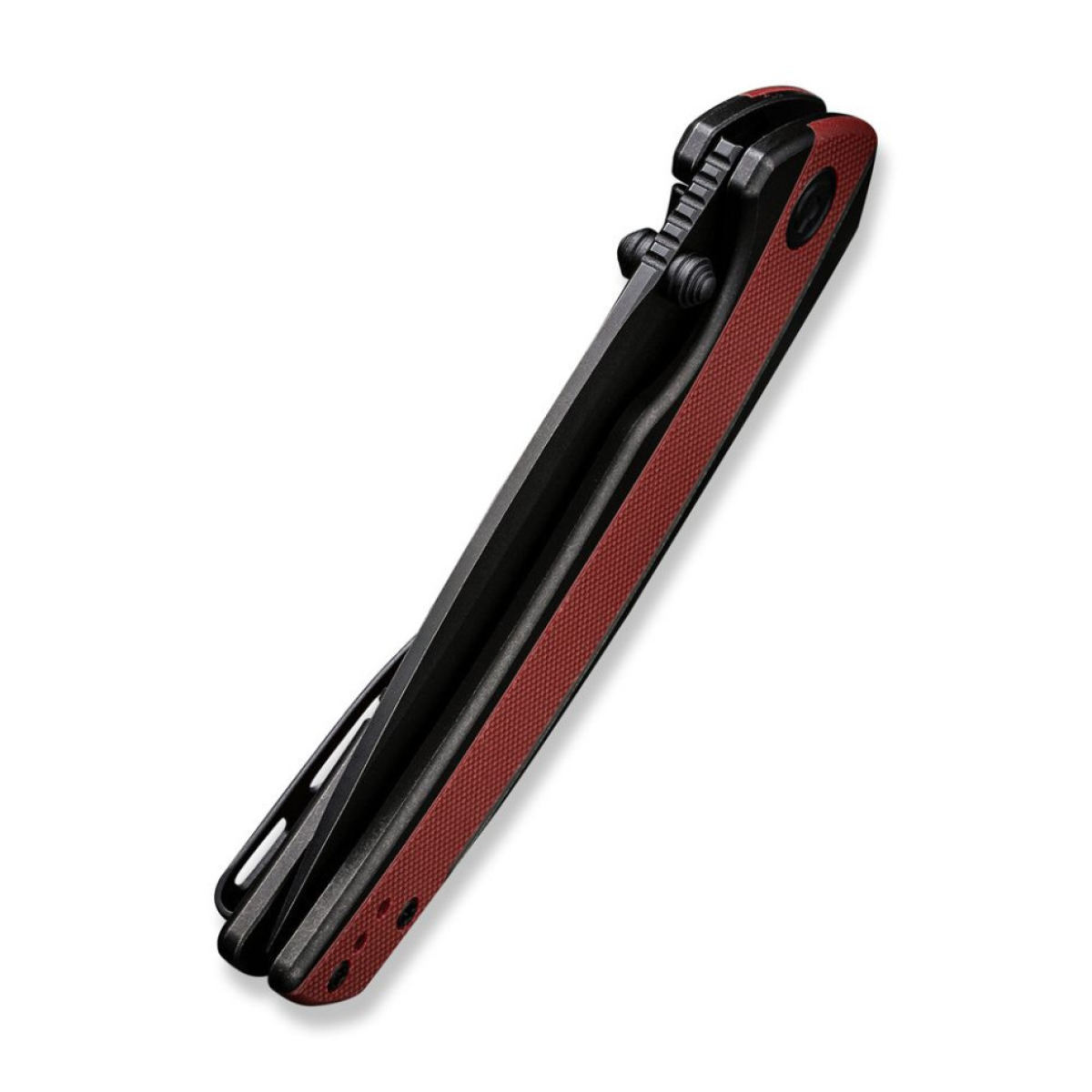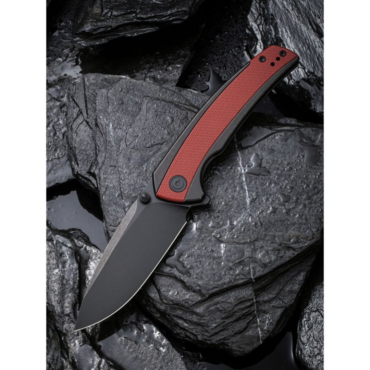 Опис складаного ножа Civivi Teraxe C20036-1: Ніж Civivi Teraxe має складану конструкцію, в розробці якої брали участь штатні дизайнери компанії. Довжина моделі у відкритому положенні досягає 203.2 мм, де 88.3 мм припадають на клинок і 114.9 мм — на руківʼя. Дизайн інструмента відрізняється простотою — в ньому присутня мінімальна кількість дрібних елементів, що спрощує експлуатацію ножа та догляд за ним. Сталь Nitro-V є матеріалом клинка. Це високовуглецева нержавіюча марка, відмінною особливістю якої є включення азоту та ванадію у складі. Азот нарівні з хромом підвищує стійкість металу до корозії, тоді як ванадій збільшує міцність сталі. Обробка клинка black stonewash усуває блиск. Крім естетичної складової, цей метод обробки несе практичну користь, приховуючи відбитки пальців. Форма клинка drop point — класика серед складаних ножів, яка користується незмінною популярністю через функціональність. Пряме та подовжене лезо ріже акуратно й точно, навіть якщо клинок використовується в роботі з такими щільними матеріалами, як полімерний пластик або деревина. Вістрям можна здійснювати точкові проколи, не переживаючи за його цілісність, оскільки метал клинка загартований до твердості порядку 58-60 HRC. Різновид замку nested frame lock намертво фіксує відкритий ніж, не даючи йому скластися під час інтенсивних навантажень. Основний метод відкривання конструкції — натискання на язичок фліпера. Двосторонній шпеник пропонує альтернативний варіант відкривання леза, за плавність ходу якого відповідає керамічний кульковальник. Контрастна вставка зі склопластику G10 на сталевому руківʼї дозволяє міцно утримувати інструмент. Розташування кліпси можна адаптувати під індивідуальний стиль носіння, оскільки вона є двопозиційною. Вага моделі Teraxe складає 139.7 грамів. Характеристики: складаний EDC ніж із двопозиційною кліпсою зі сталі; матеріал клинка – сталь Nitro-V (58-60 HRC); клинок з обробкою black stonewash; форма клинка – drop point; тип заточування – прямий; фіксувальний механізм – замок nested frame lock; матеріал руківʼя – нержавіюча сталь з інкрустацією зі склопластику G10; повна довжина – 203.2 мм; довжина клинка – 88.3 мм; товщина клинка — 3 мм; довжина руківʼя – 114.9 мм; товщина руківʼя – 11 мм; вага – 139.7 г.