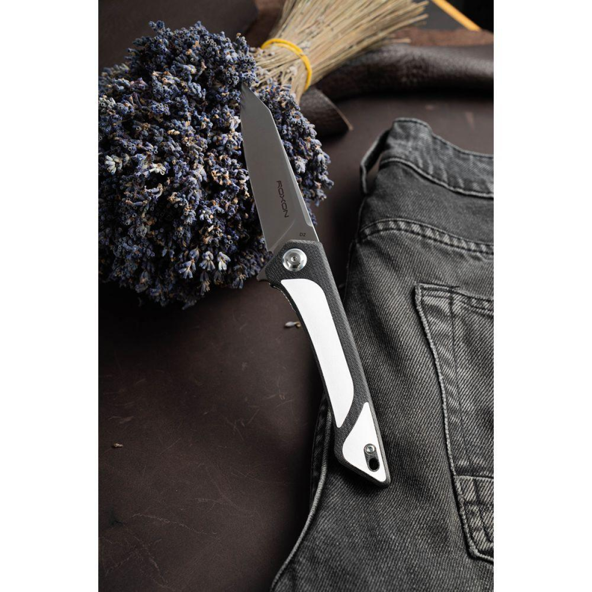 Складаний ніж моделі Roxon K2 представлений у різних варіантах кольору: білий, коричневий, оранжевий. Цей інструмент має зручну конструкцію і є досить потужним ножем для туристичного застосування. Клинок різновиду drop-point підходить для виконання колючих, так і ріжучих рухів. Він є універсальним і часто його можна зустріти серед ножової продукції. Ідеально підходить для різання, рубання, очищення, виколупування та інших дій.