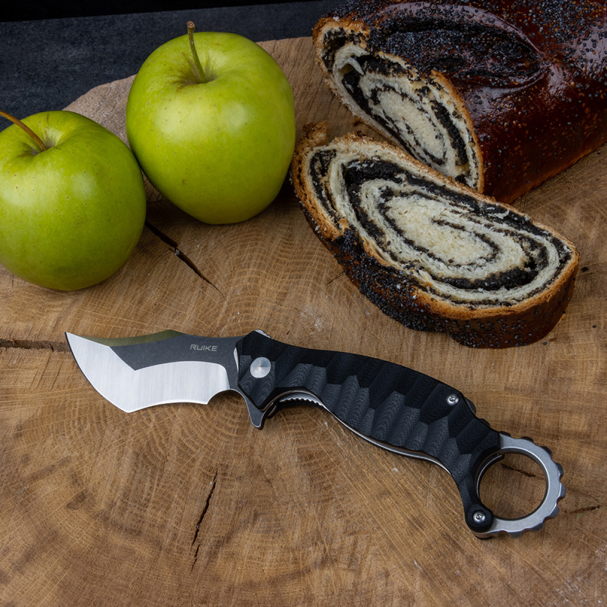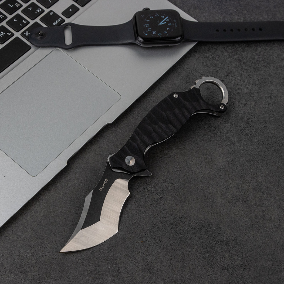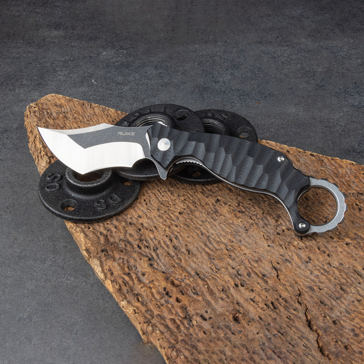 Опис ножа Ruike P881-B1:Компанія Ruike зарекомендувала себе, як іменитий виробник оригінальних, високоякісних і стильних ножів. З моменту свого заснування в 1998 році фірма отримала колосальний досвід в розробці ножовий продукції. Вироби цілком відповідають побажанням споживачів. Все нові і нові моделі завойовують увагу ножеманов, і ось уже колекцію поповнила чергова новинка бренду – ніж-керамбит Ruike P881-B1. Рукоятка моделі виконана в темно-сірому кольорі, вага складає 134 грами, а повна довжина – 20,2 сантиметри. Забарвлення неоднорідна, з малюнком. Ніж забезпечений зручною металевої кліпсою, що дозволяє чіпляти його на одяг або, приміром, на рюкзак. Має круглий підшипник і замок за типом Liner lock, оберігає модель від випадкового відкриття або випадкового закриття. Це дуже безпечний і надійний механізм, який значно спростив використання ножів. В результаті відкривати і закривати модель можна буквально однією рукою. Лезо ножа має довжину 7,6 сантиметра, товщина клинка становить три з половиною міліметри. Лезо виготовлено з застосуванням сталі марки 14C28N. Сталь пройшла при виробництві криогенну обробку. Це матеріал, не схильний до корозії, від шведської компанії Sandvic Stainless. Дана сталь була розроблена спеціально для ножів, твердість її досягає 55-62 HRC. Твердість моделі – 58-60 одиниць за шкалою Роквелла, що вважається досить пристойним показником. Це надійне пристосування, яке відмінно розрізає і витримує механічні навантаження без втрати ефективності. Рукоятка ножа зроблена з використанням матеріалу G10. Його особливість – у прекрасною міцності, водостійкості та стійкості до пошкоджень. Це довговічний матеріал, за рахунок наявності таких цінних якостей його часто застосовують при створенні ножовий продукції. Також в основі рукояті – нержавіюча сталь 420. Виріб, про який йде мова, було розроблено для користувачів, що захоплюються тактичними ножами. Зручне заднє кільце, яким забезпечена модель, не тільки гарантує міцний захоплення і утримання, а також забезпечує велику варіативність для ударів і захисту. Словом, це ефективний добротний ніж, який, крім іншого, є першим складним керамбитом фірми Ruike. Надійне пристосування для справжніх цінителів вишуканих і продуманих інструментів. Особливості: складаний ніж-керамбит; повний розмір моделі 20,2 сантиметра; вага ножа – 134 грами; твердість 58-60 одиниць Роквелла; лезо виготовлене з сталі 14C28N; ручка зроблена з застосуванням G10; модель оснащена замком Liner lock; довжина клинка становить 7,6 сантиметра.